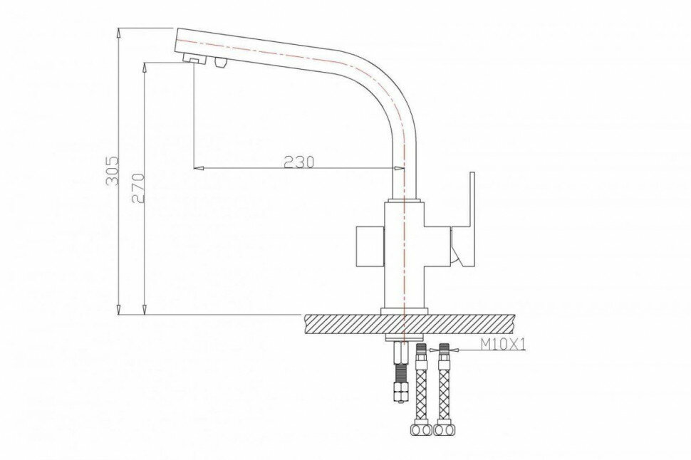 | Комплектация | Смеситель, гибкая подводка 45 см ½", комплект крепежа, переходник-цанга для подключения фильтра |