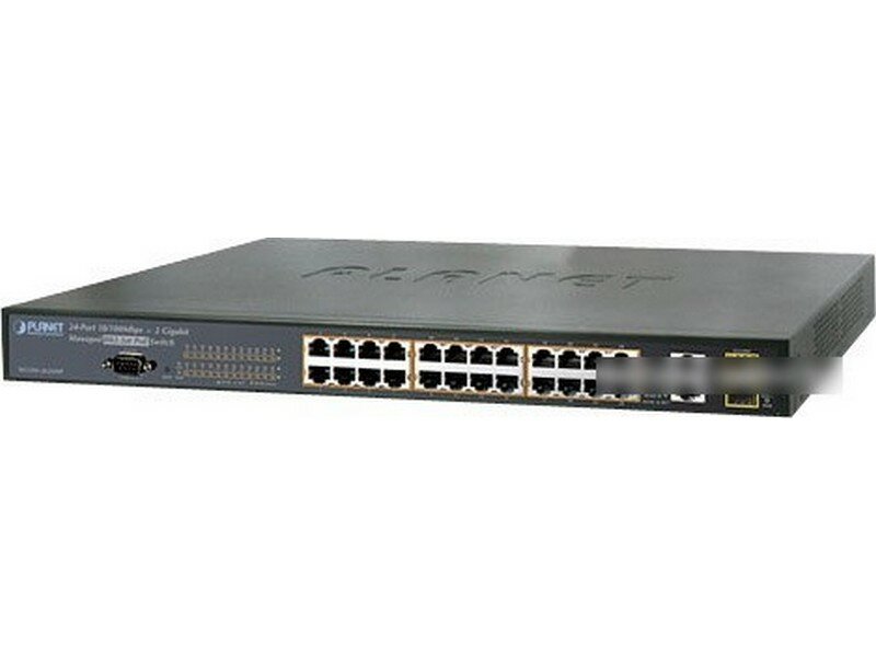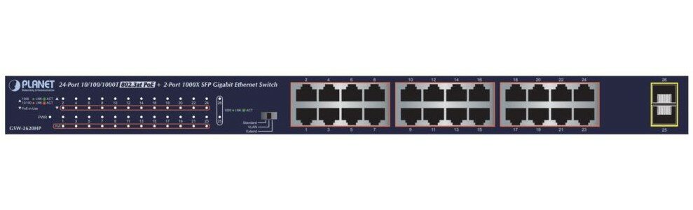 Коммутатор PLANET GSW-2620HP 24 порта 10/100/1000T 802.3at PoE + 2 порта 1000X SFP (220 Вт)