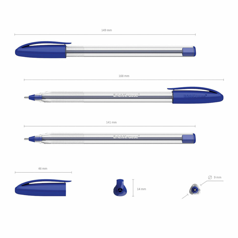 Ручка шариковая масляная ERICH KRAUSE "U-108 Classic" синяя, корпус прозрачный, узел 1,0 мм, линия письма 0,3 мм, 47564