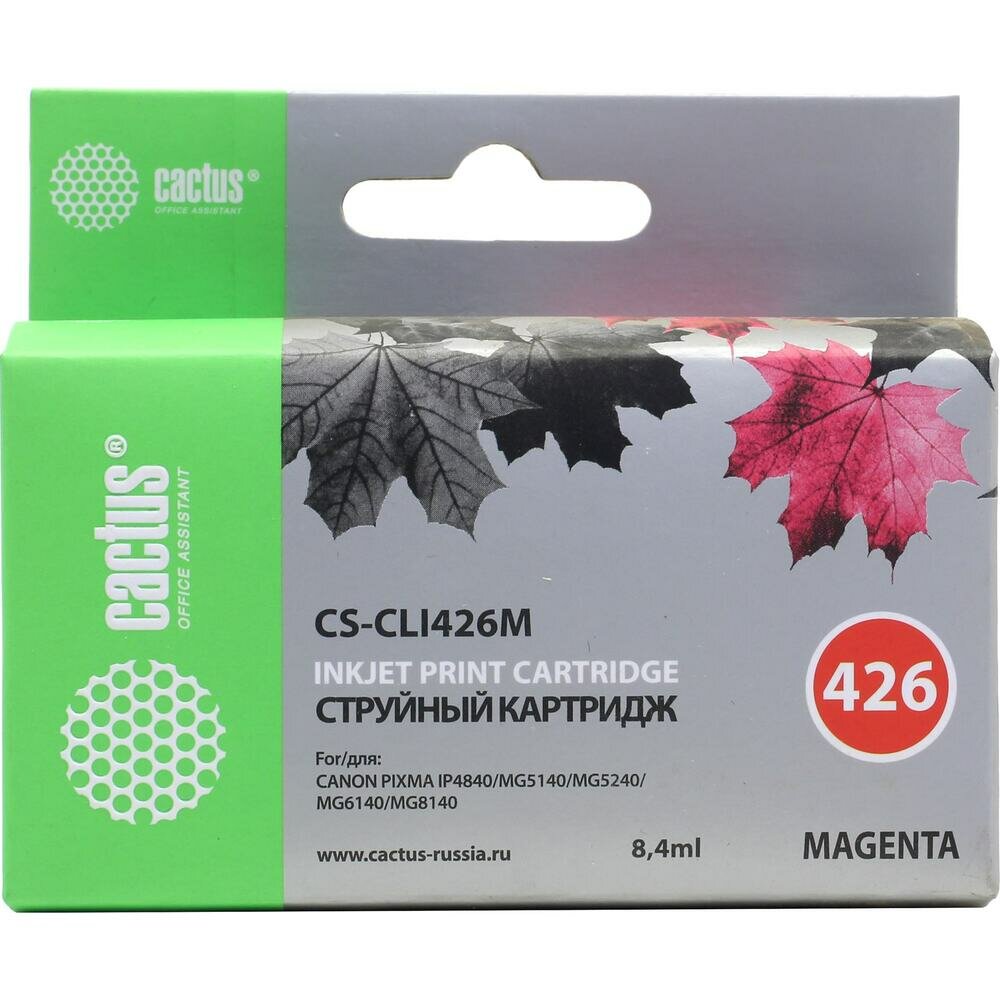 Квант продажи 1 ед. Картридж струйный CACTUS (CS-CLI426M) для CANON Pixma MG5140/5240/6140/8140, пурпурный