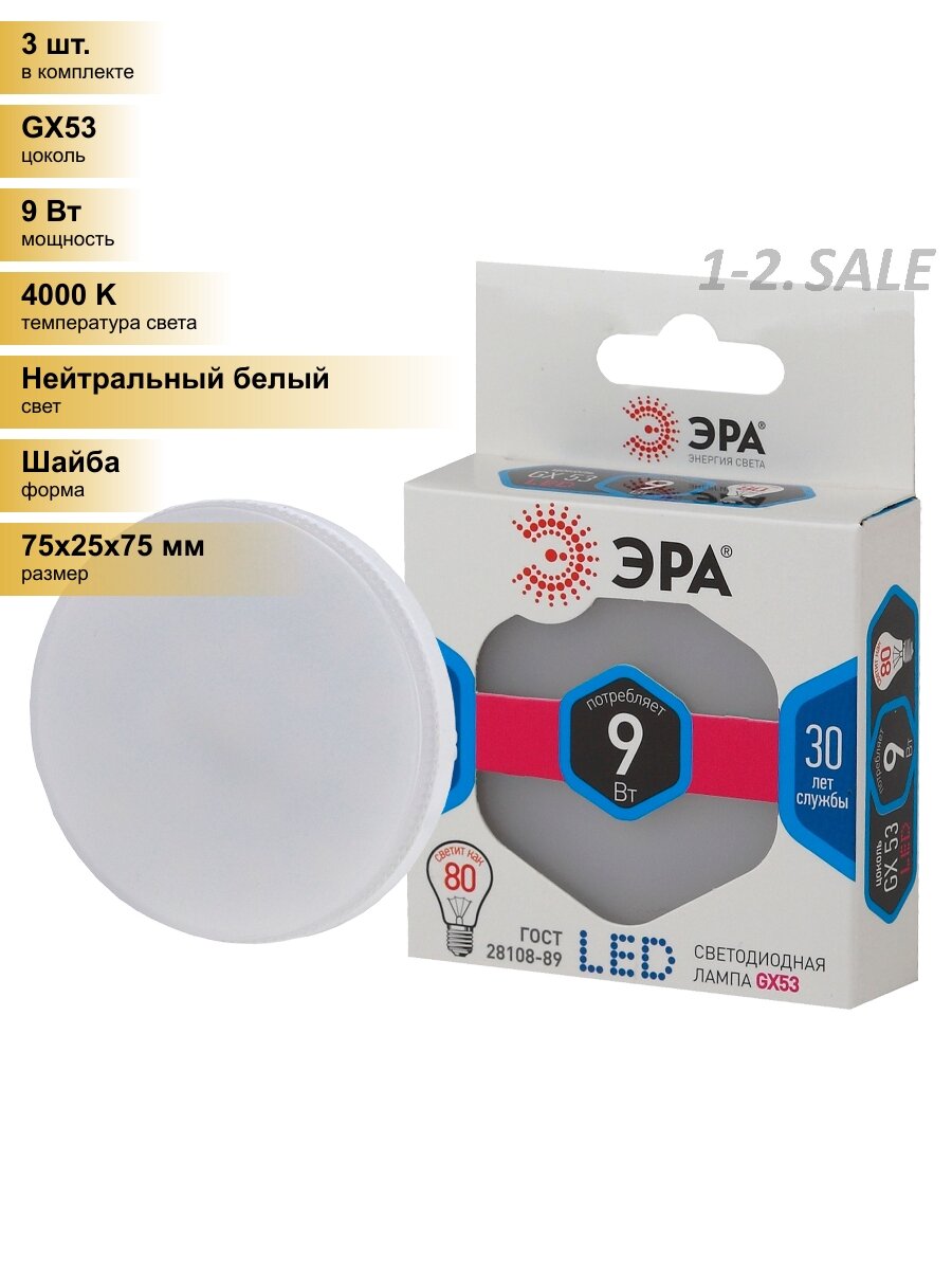 Купить (3 шт.) Светодиодная лампочка ЭРА стандарт GX53 9W(720lm) 4000K 4K 25x75 6841 Нейтральный белый. Цоколь GX53