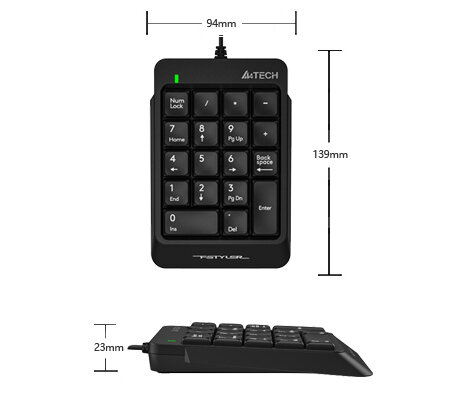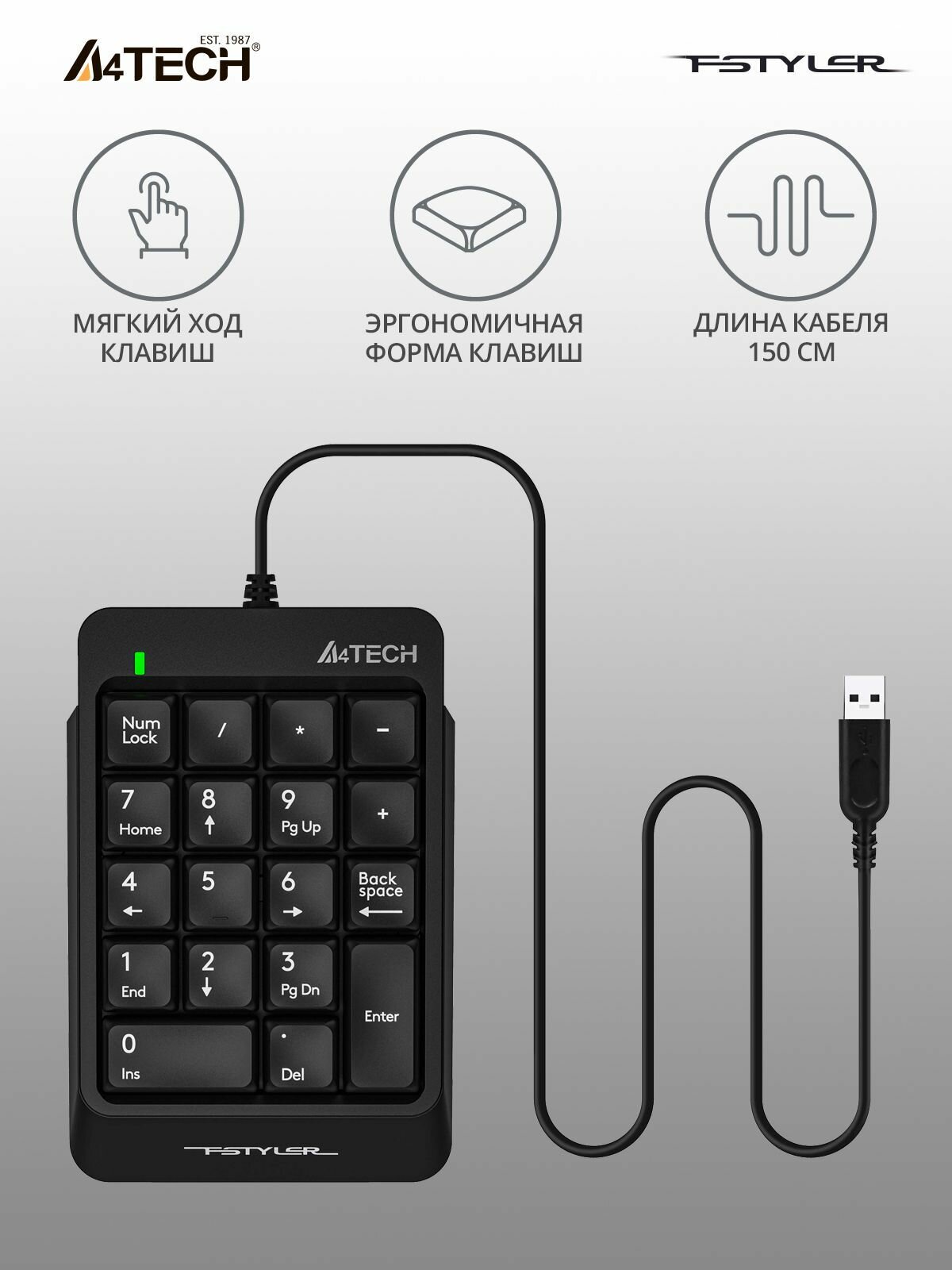 Цифровой блок A4Tech Fstyler FK13P, мембранная, проводная, USB, черный