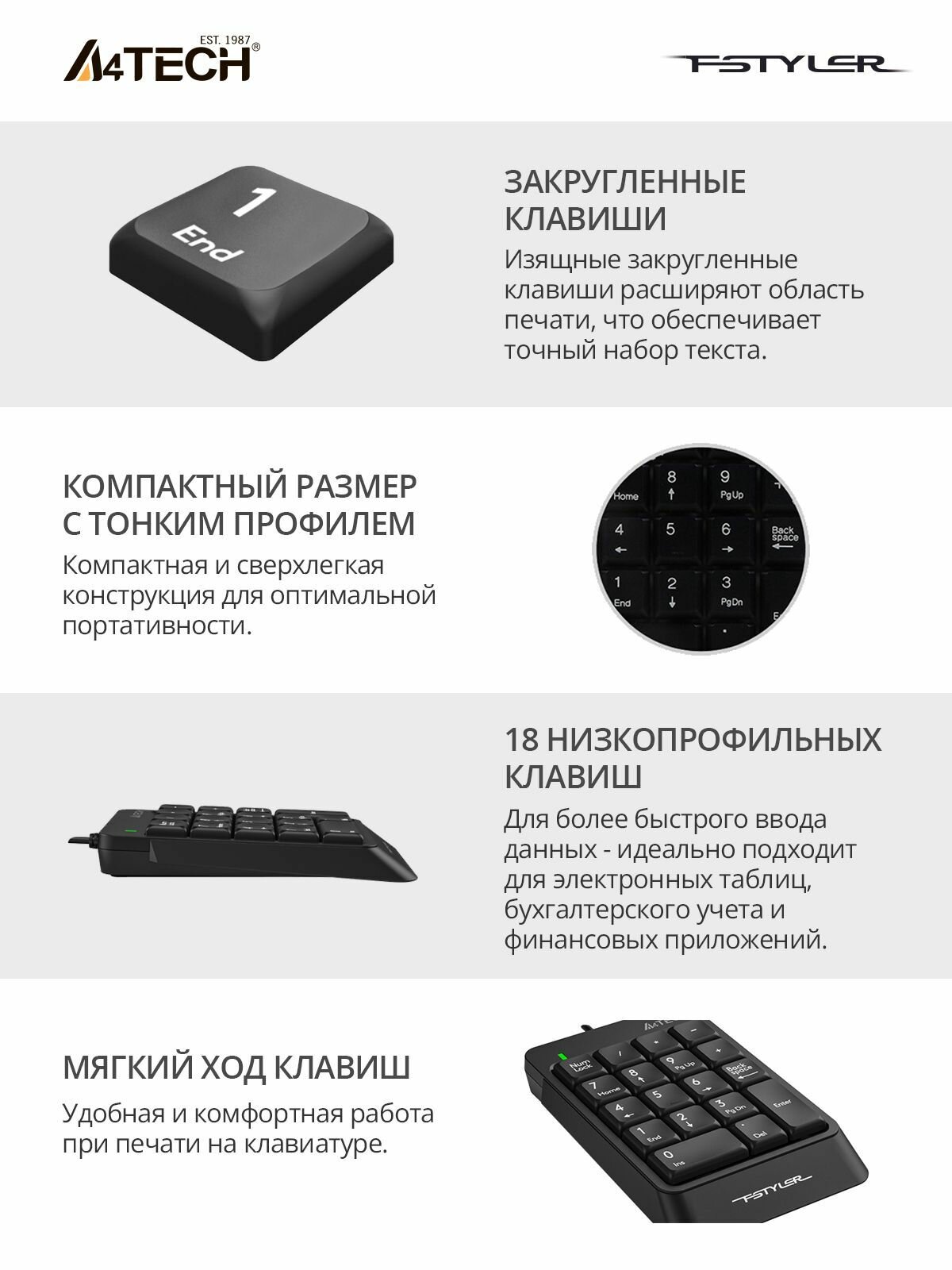 Клавиатура A4Tech Fstyler FK13P числовой блок, черный USB slim для ноутбука (1359931)