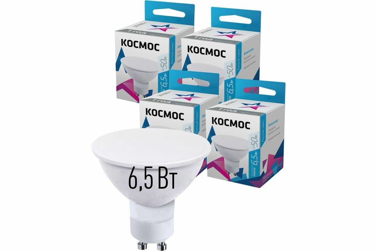 Светодиодная лампа Космос, 6.5 Вт, GU10, 4500 K, LED6.5wGU10C45, нейтральный белый