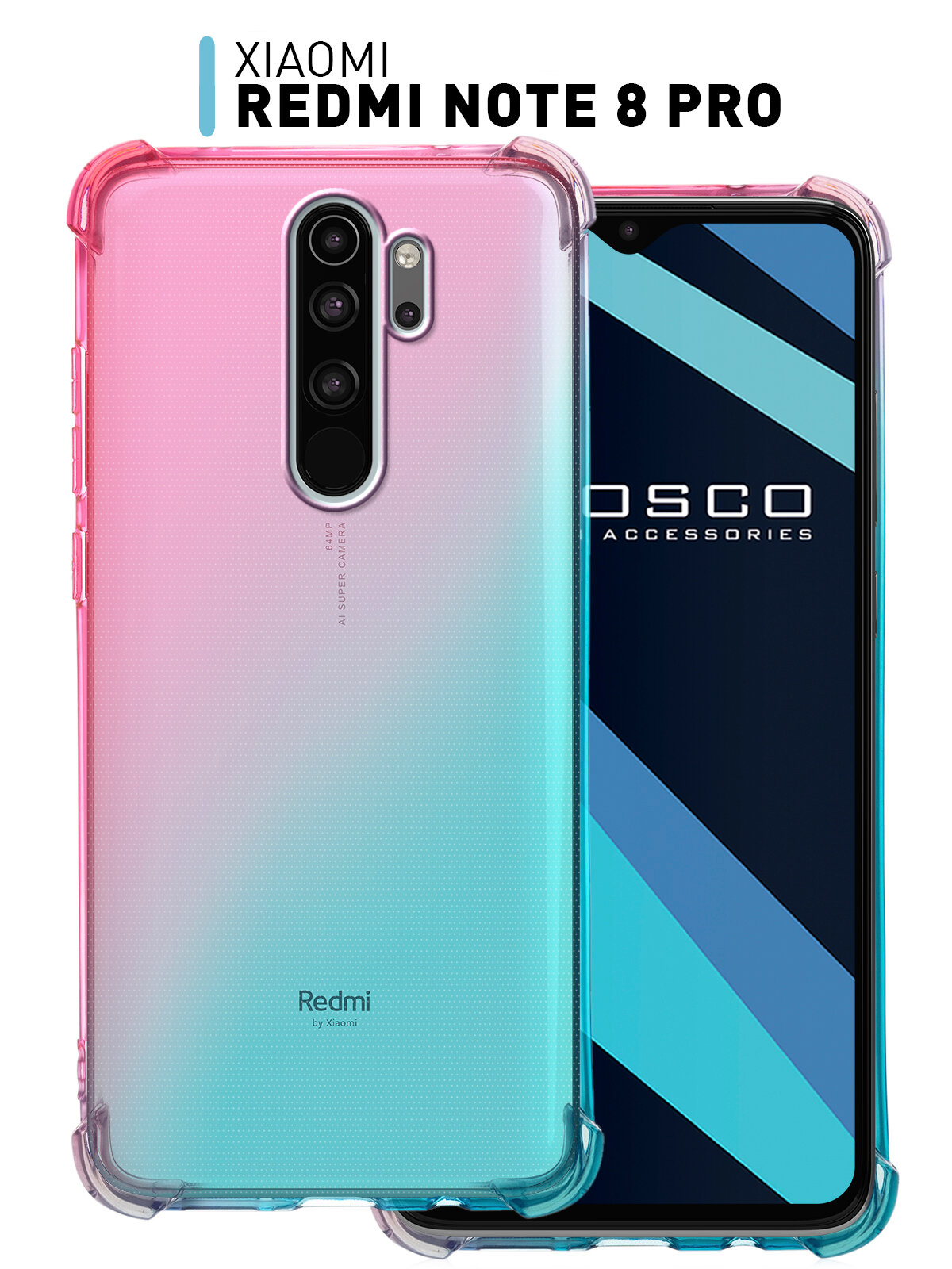 СохранитьПротивоударный силиконовый чехол Rosco на Xiaomi Redmi Note 8 Pro (Сяоми Редми Ноут 8 Про), прозрачный розово-голубой интересное: