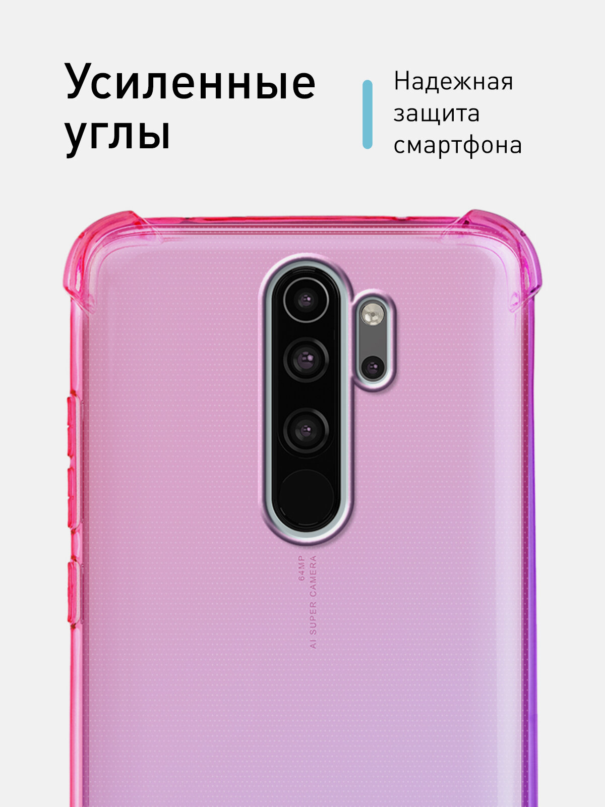 ROSCO/ Противоударный чехол для Xiaomi Redmi Note 8 Pro (Сяоми Редми Ноут 8 Про, Нот 8 Про) силиконовый, защита камеры, прозрачный фиолетово-розовый