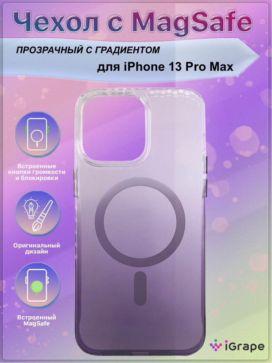 Прозрачный чехол с MagSafe и градиентом для iPhone 13 Pro Max, iGrape (Фиолетовый) / чехол на айфон 13 про макс интересное: