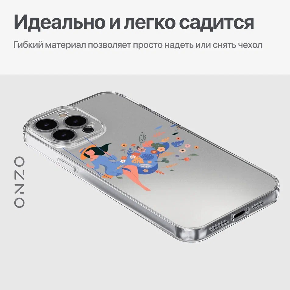 СохранитьНакладка на Айфон 13 Про Макс / iPhone 13 Pro Max чехол прозрачный с рисунком "Девушка и цветы" интересное: