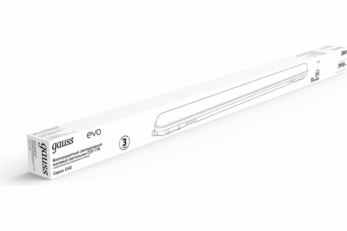 Светильник светодиодный EVO ССП-176 36Вт 4000К IP65 3950лм 1200х76х66 матов. GAUSS 864425236 (1 шт.)