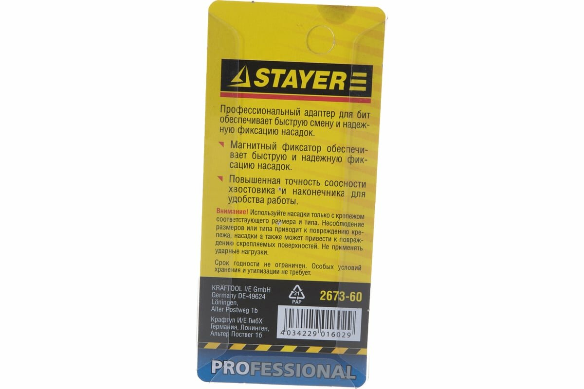 Адаптер STAYER ″PROFI″ для бит цельный магнитный, 60мм (2673-60)