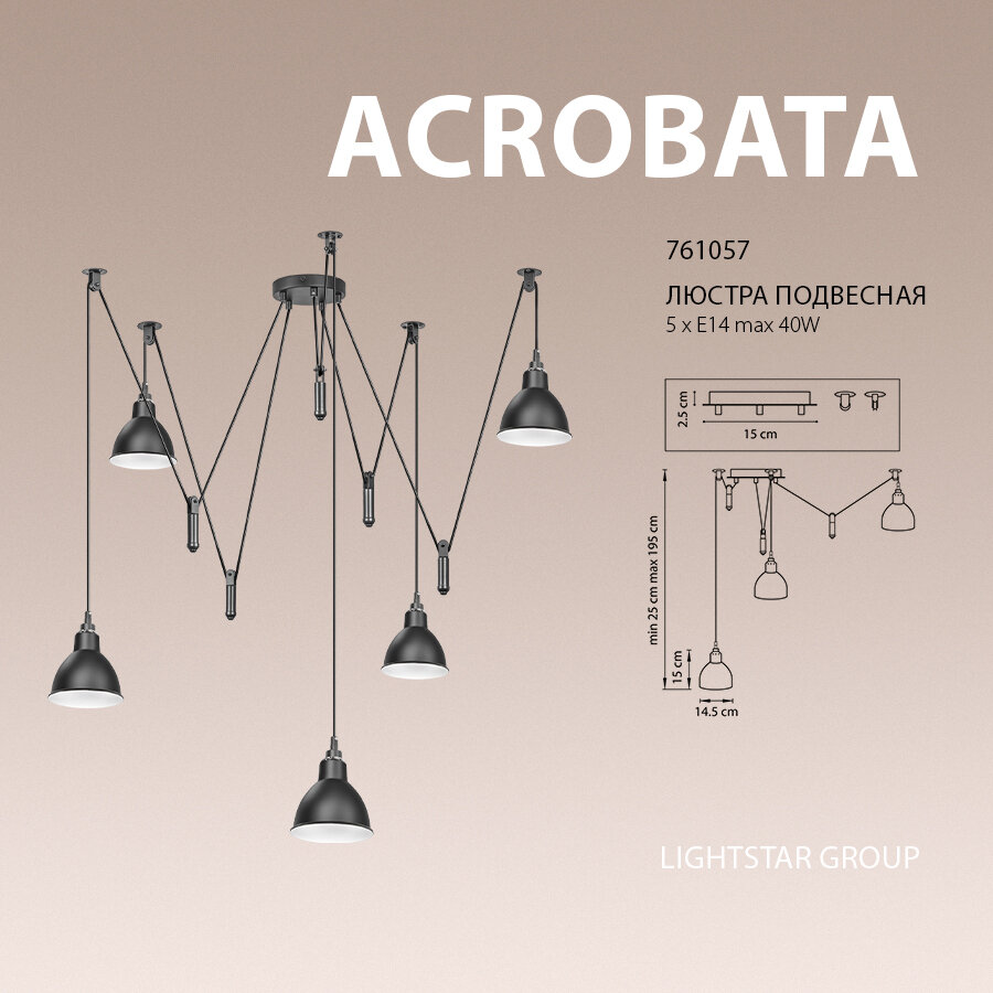Купить Lightstar 761057 Люстра ACROBATA 5х40W E14 черный