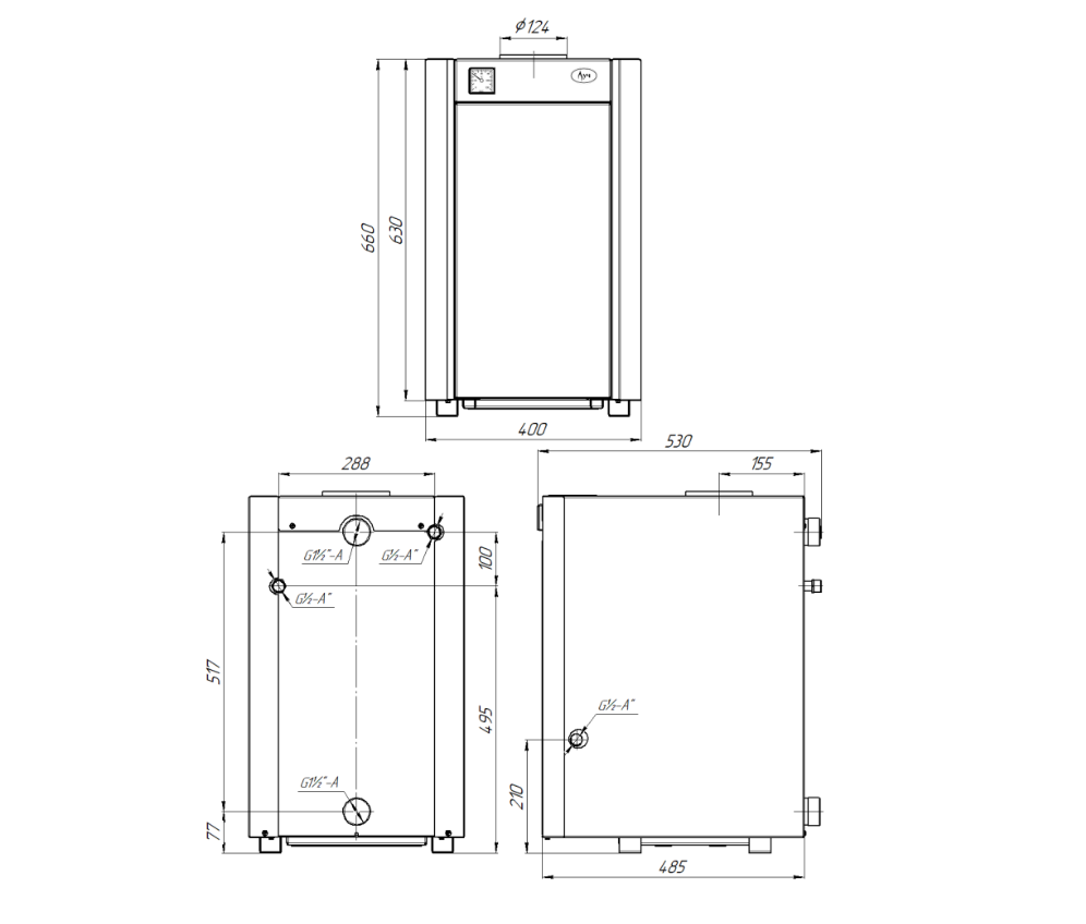| Патрубок подключения контура отопления | 2" |