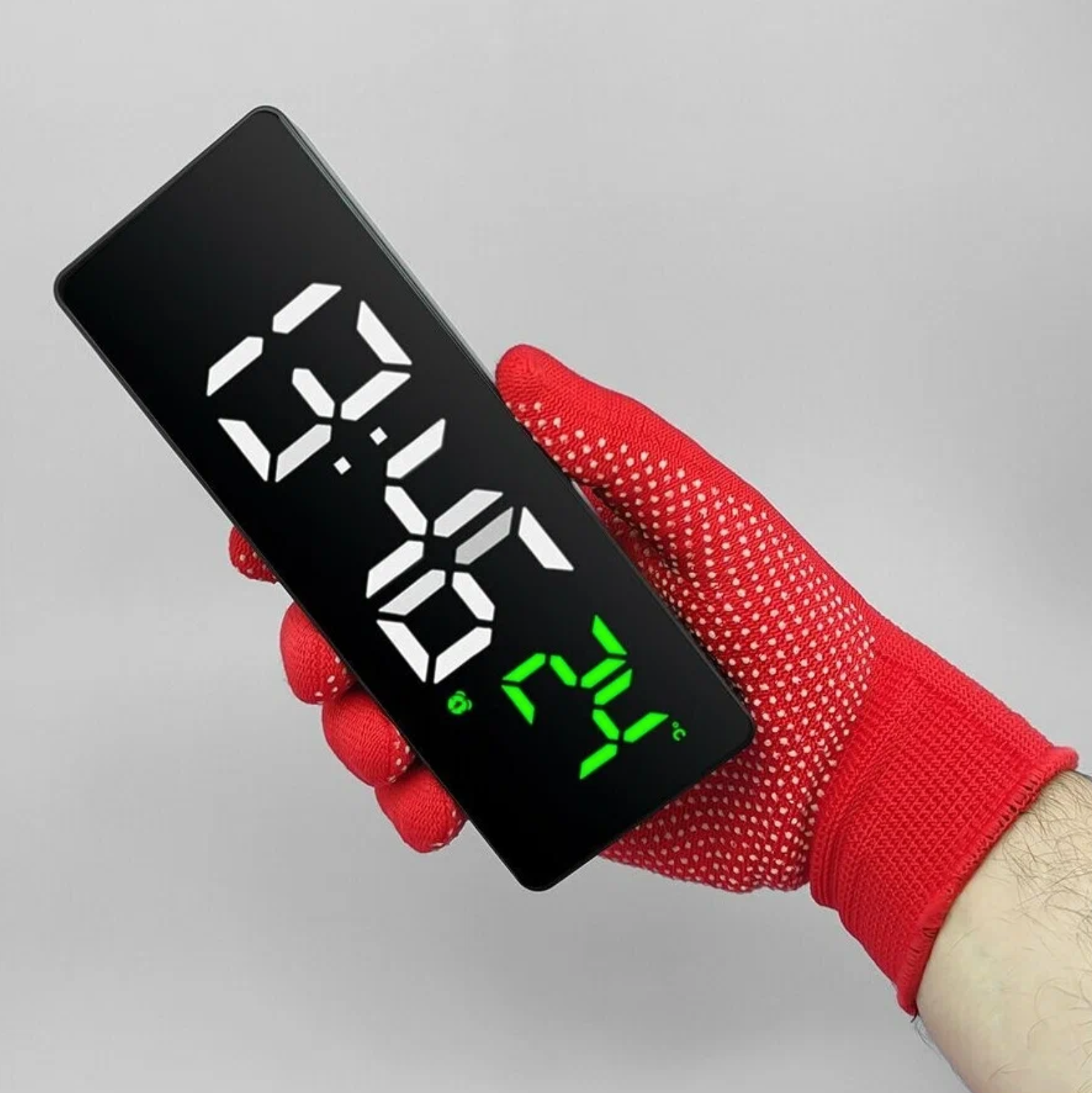 Компактные настольные часы Космос X0715 с зеркальным дисплеем и яркой зелёными цифрами (t-бел.), в корпусе черного цвета (без адаптера питания)