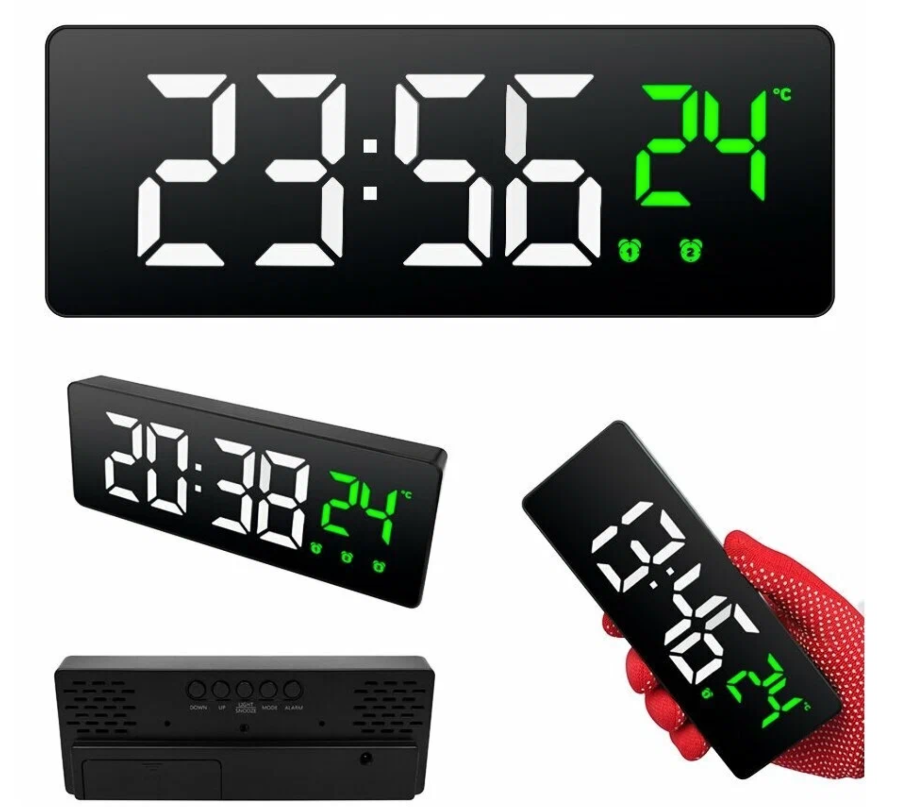 СохранитьЧасы электронные цифровые настольные с будильником, термометром и календарем белая зелёная подсветка интересное: