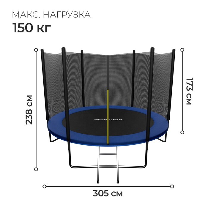 Батут 305 см, высота сетки h=173 см + лестница, цвет синий 3043367 интересное: