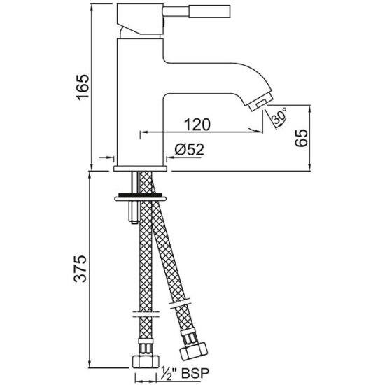 Смеситель для раковины Solo, однорычажный, металлический рычаг, гибкие шланги 375 мм, Jaquar SOL-CHR-6001B