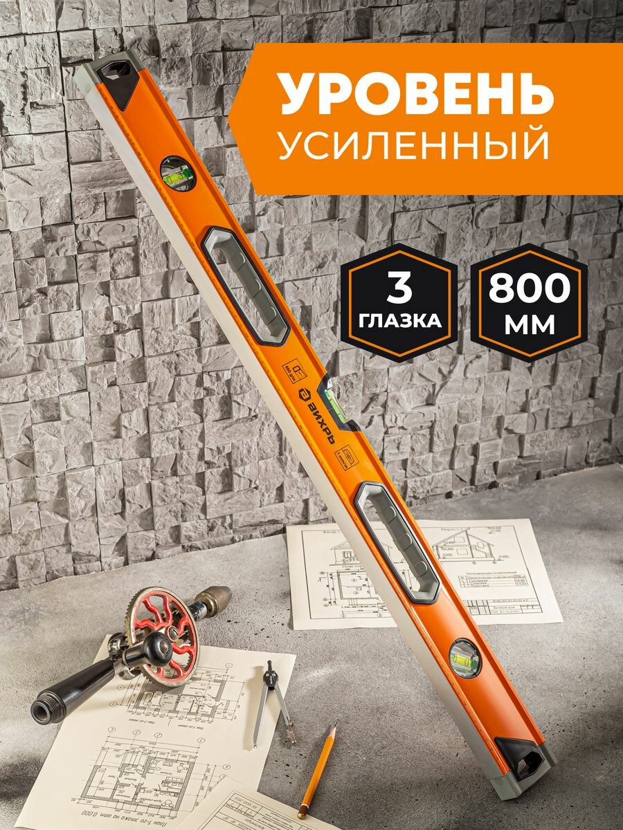 Купить Уровень строительный алюминиевый 800 мм вихрь Усиленный 3 глазка (1 зеркальный) / уровень измерительный фрезерованный 73/11/4/11