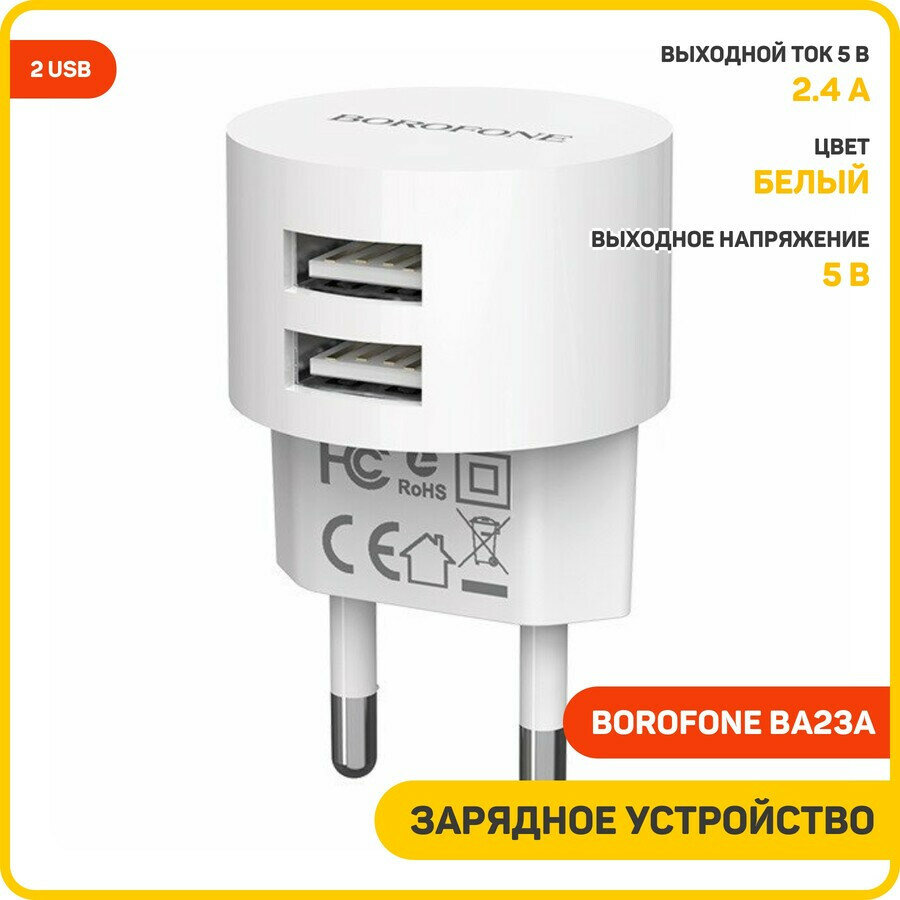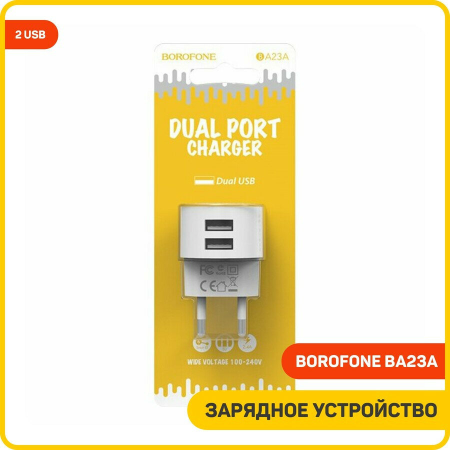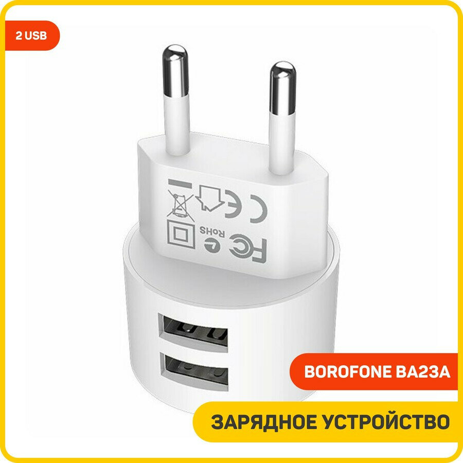 Сетевое зарядное устройство Borofone BA23A, 2xUSB, 2.4 А, кабель microUSB, белое