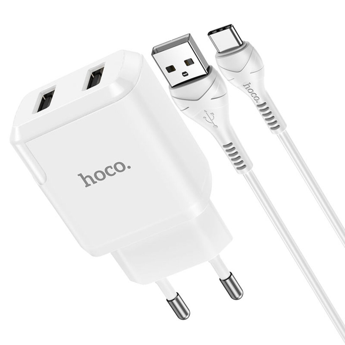 Купить Сетевое зарядное устройство, 2 USB 2.1A 10.5W (N7), HOCO, Type-C, Умная зарядка, белый