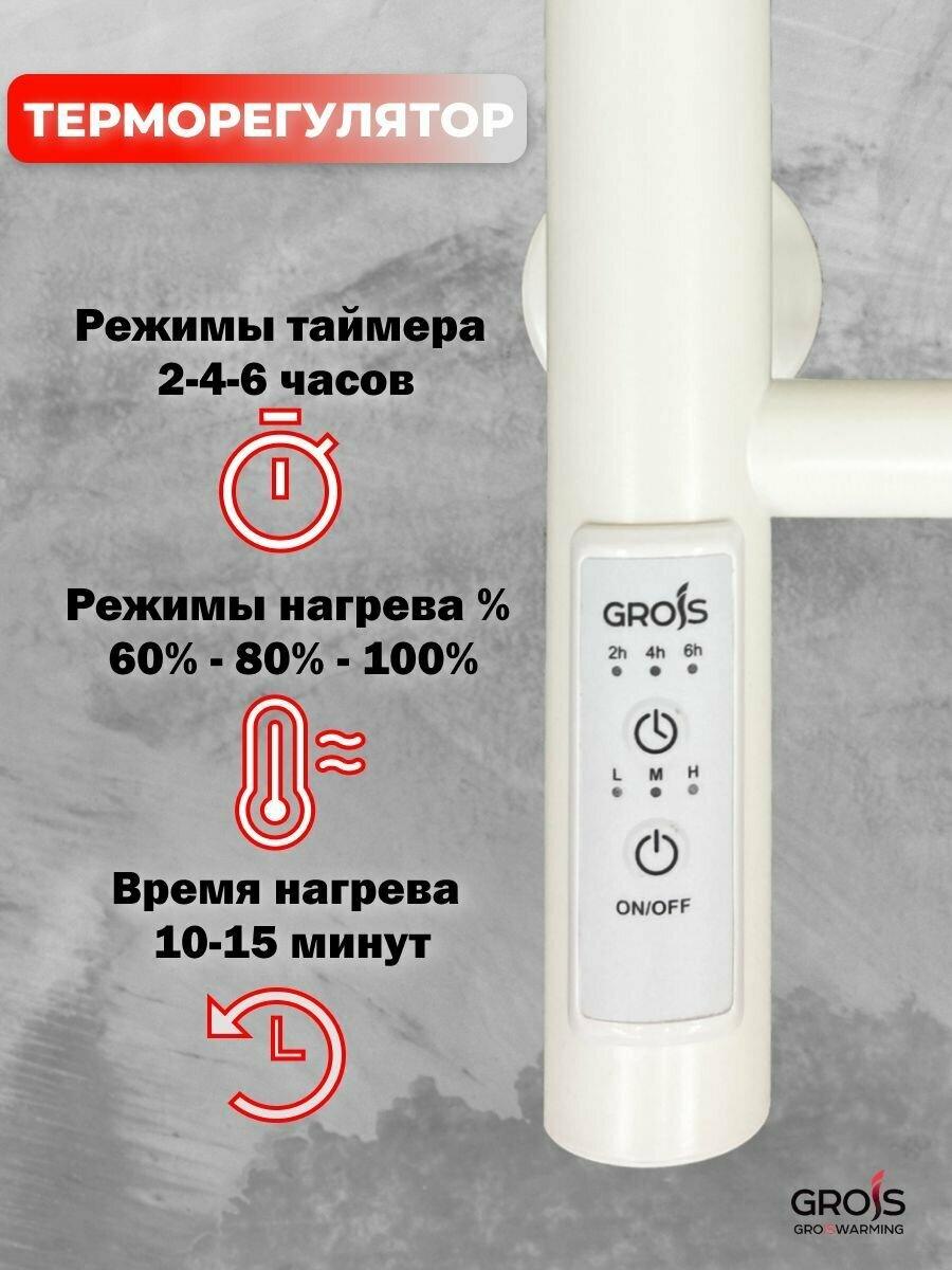 Электрический полотенцесушитель Grois Alex GR-101 400х600 П6 RAL9016 белый матовый