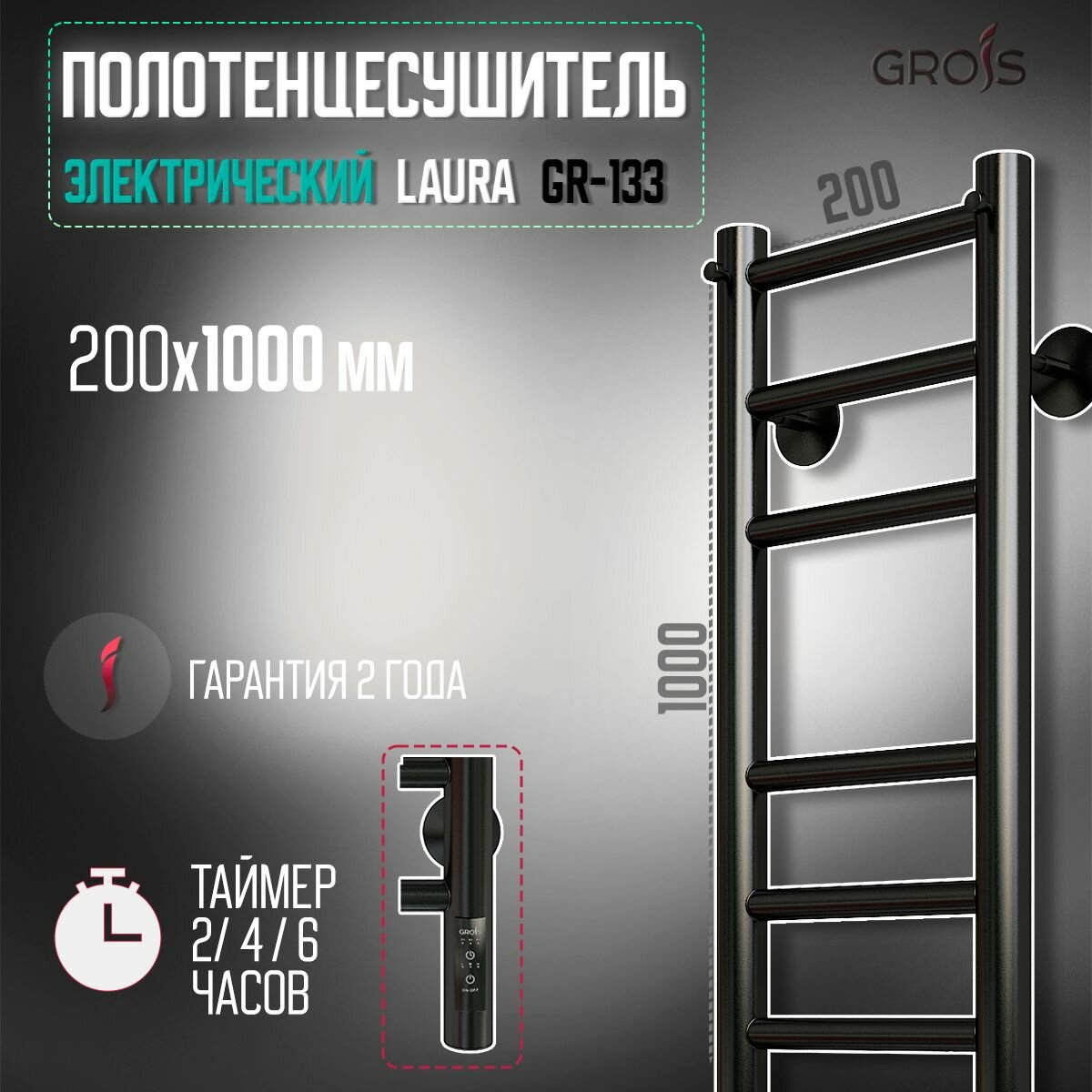 Купить Полотенцесушитель Электрич. с/т GROIS Laura GR-133 200x1000 RAL 9005 П10 R черный матовый