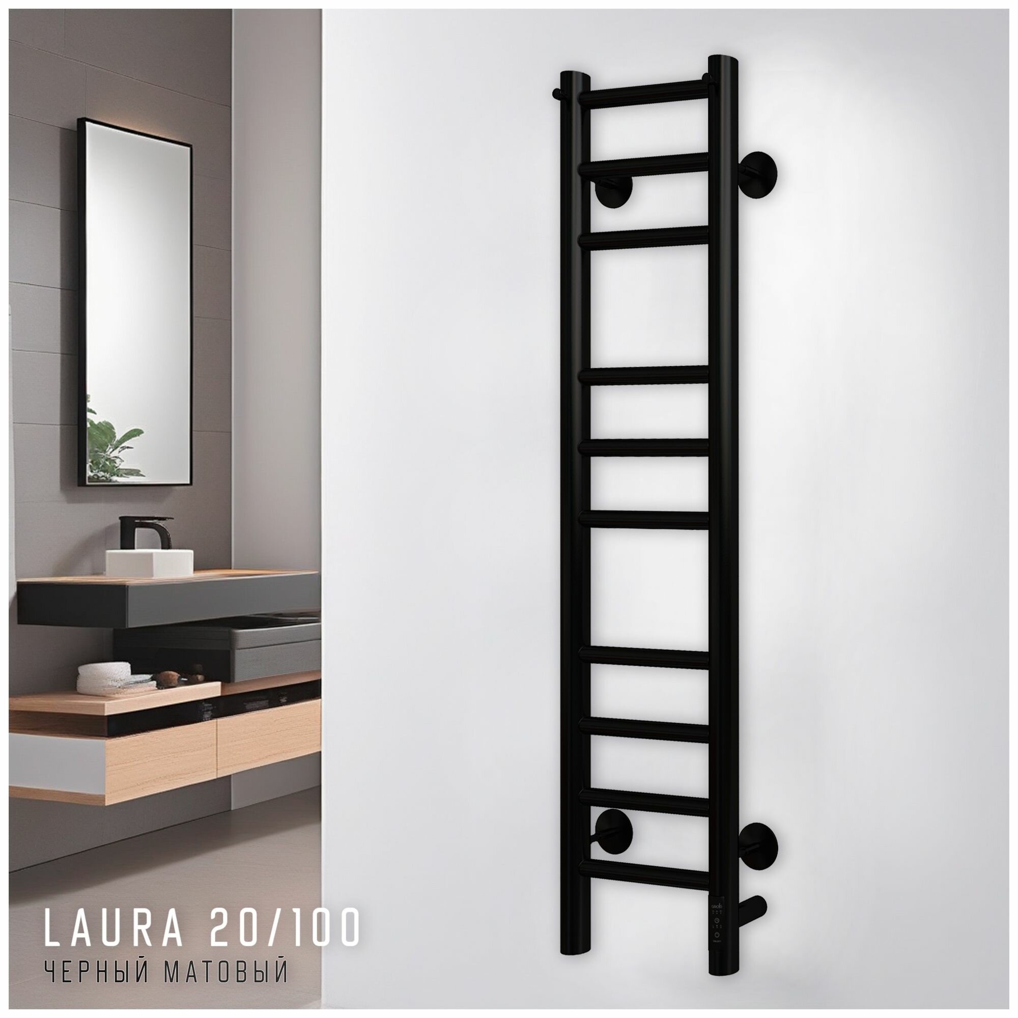 Полотенцесушитель электрический Laura GR-132 500x800 П8 black mat L -левое подключение