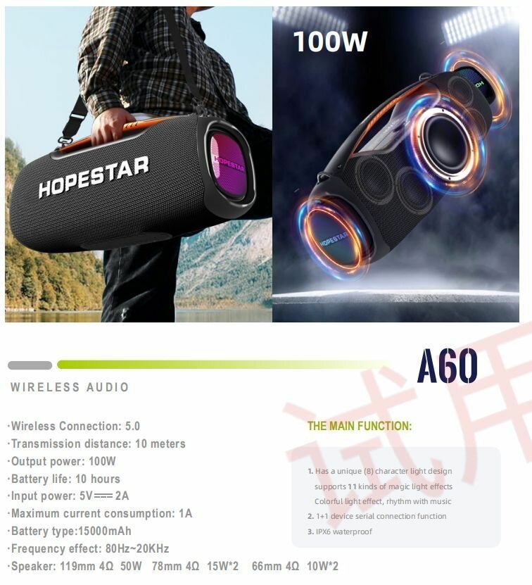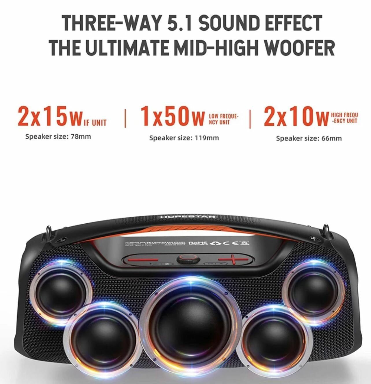 СохранитьБольшая Блютуз Колонка Hopestar A60, акустическая система с 5 динамиками, мощностью 100W с микрофоном интересное: