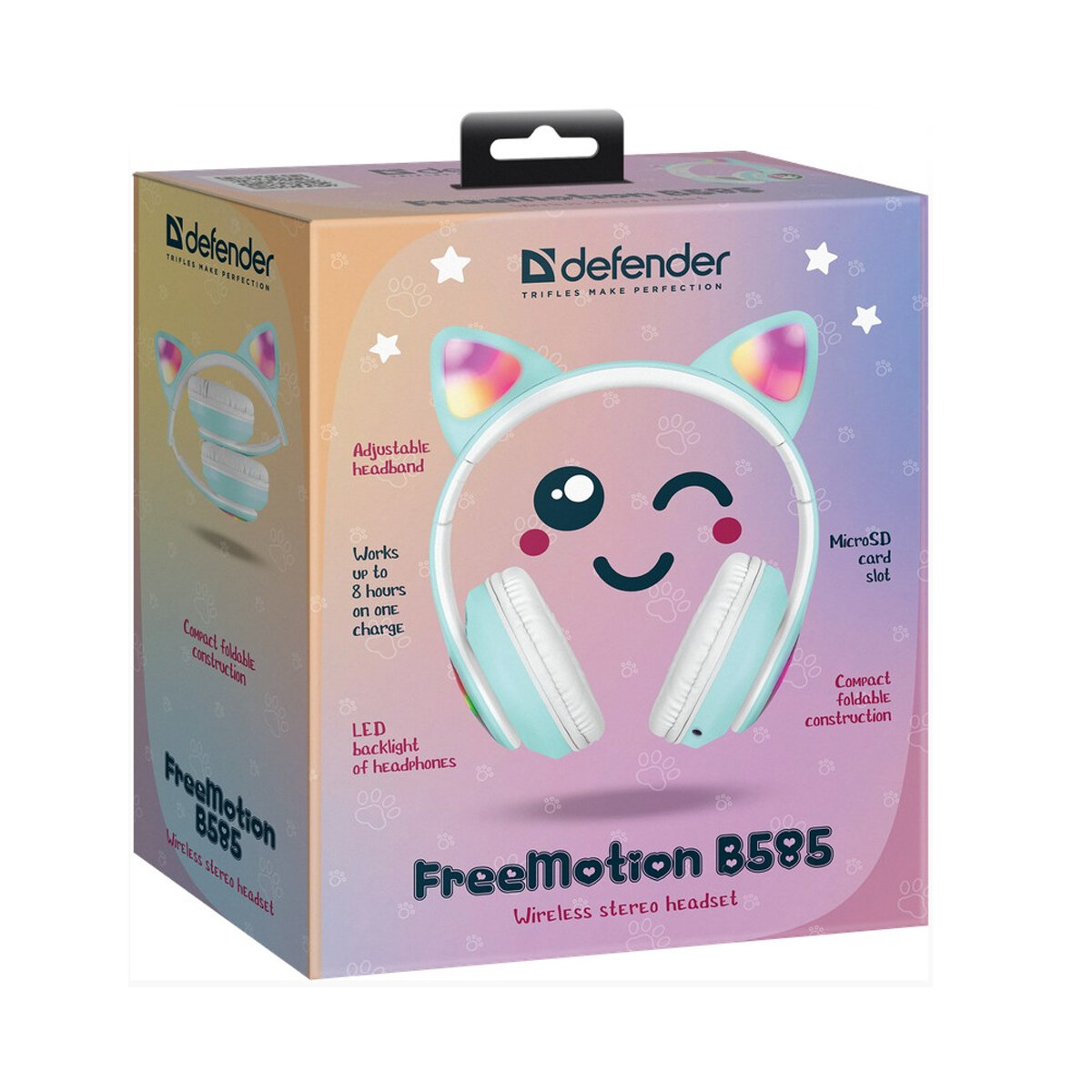 Наушники беспроводные накладные Defender FreeMotion 585, Bluetooth 5.0 + microSD + MP3 плеер, сиреневый, LED подсветка