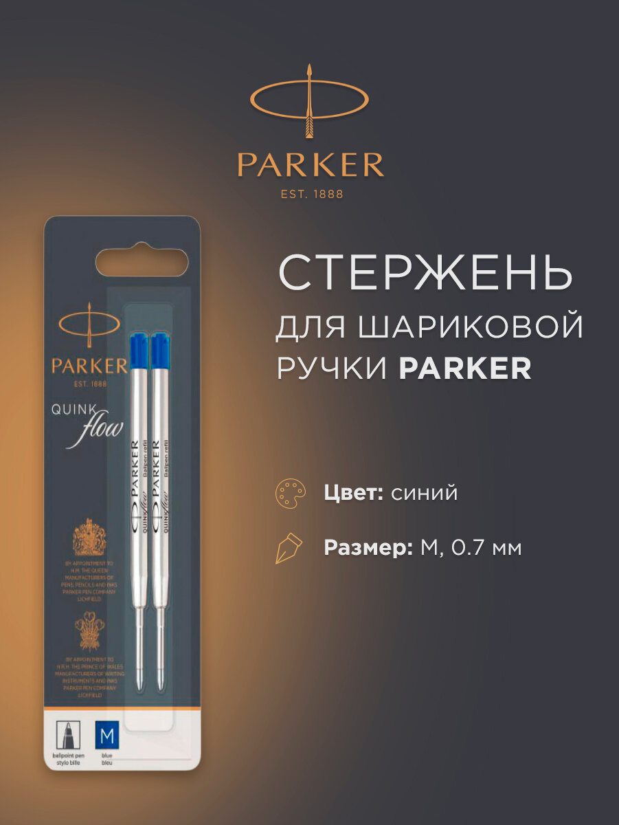 Стержень для шариковой ручки PARKER QuinkFlow Bp Z08 M 1 мм, 98 мм (2 шт.) синий