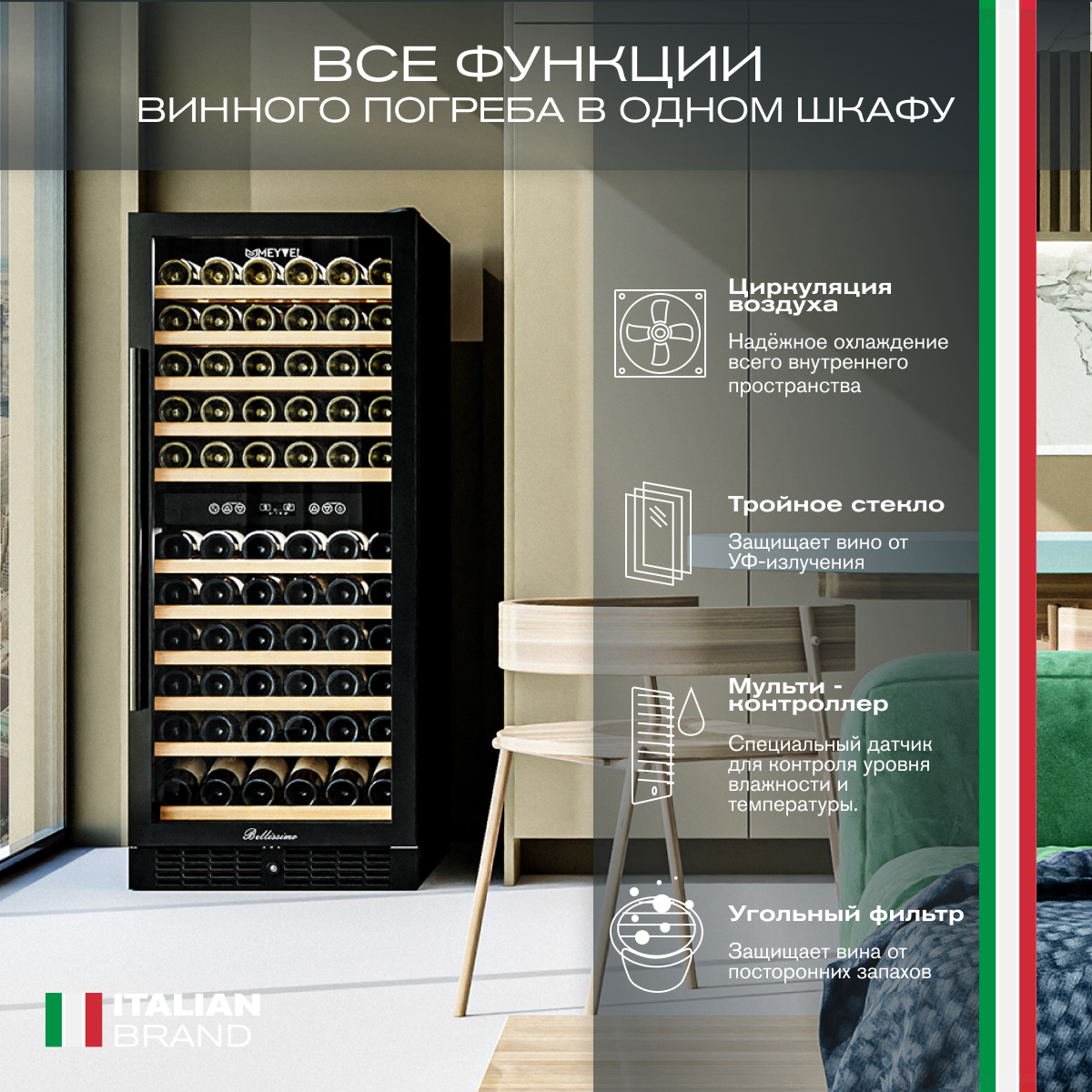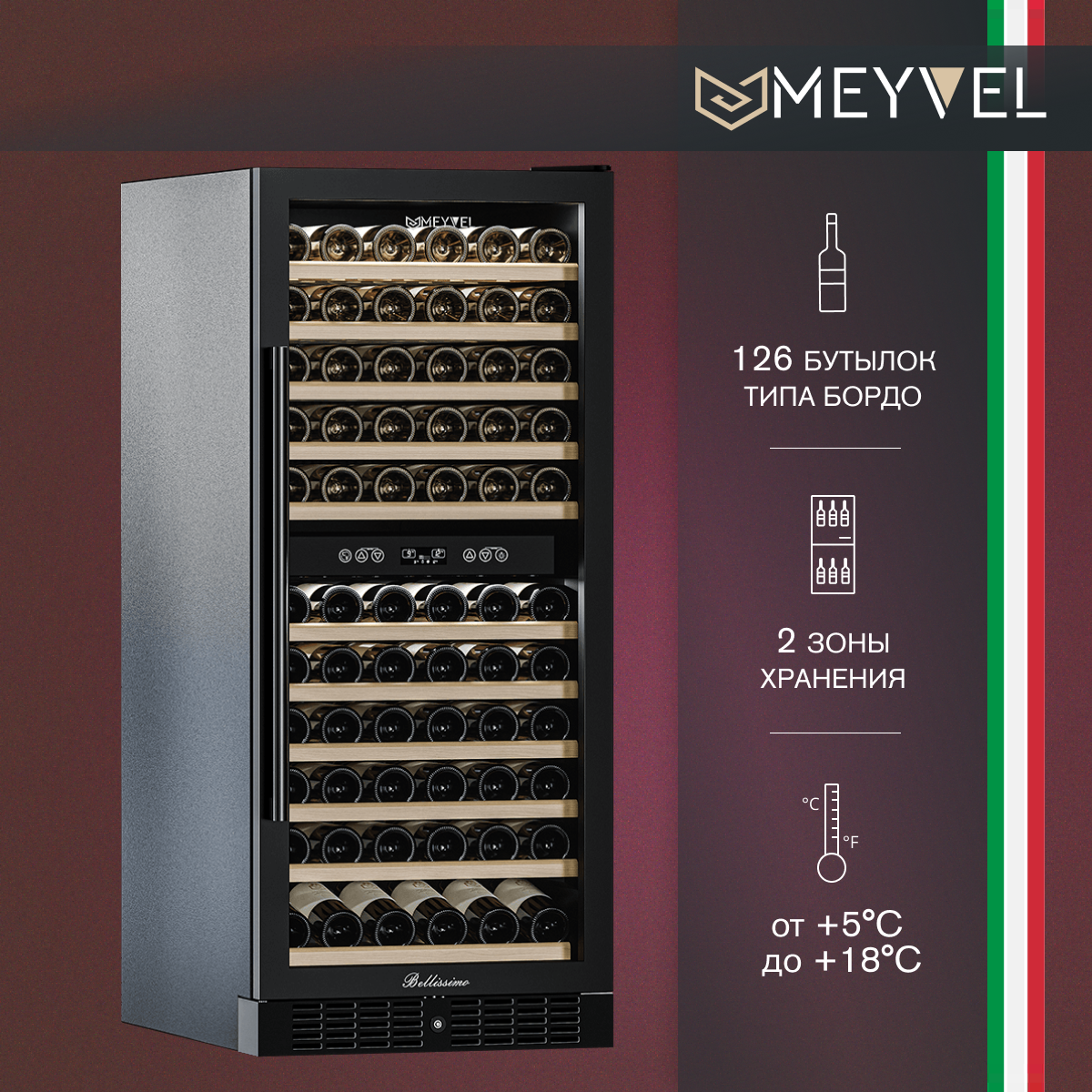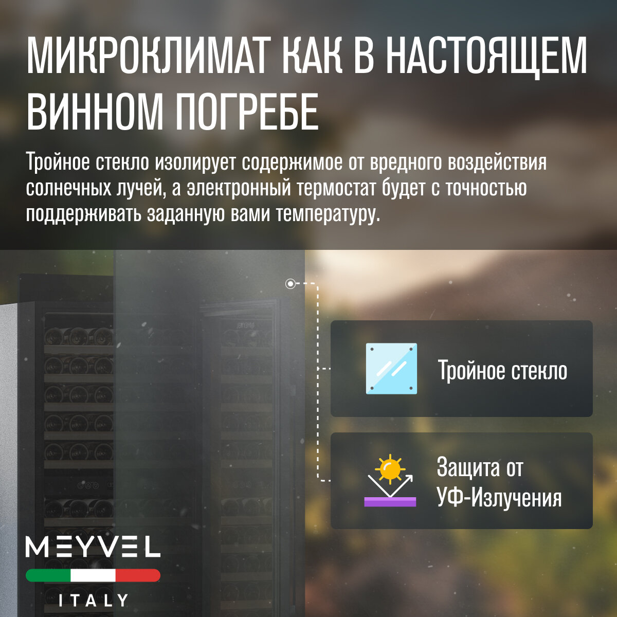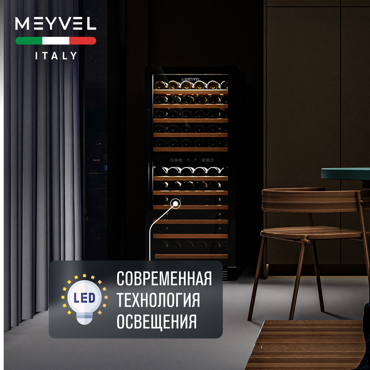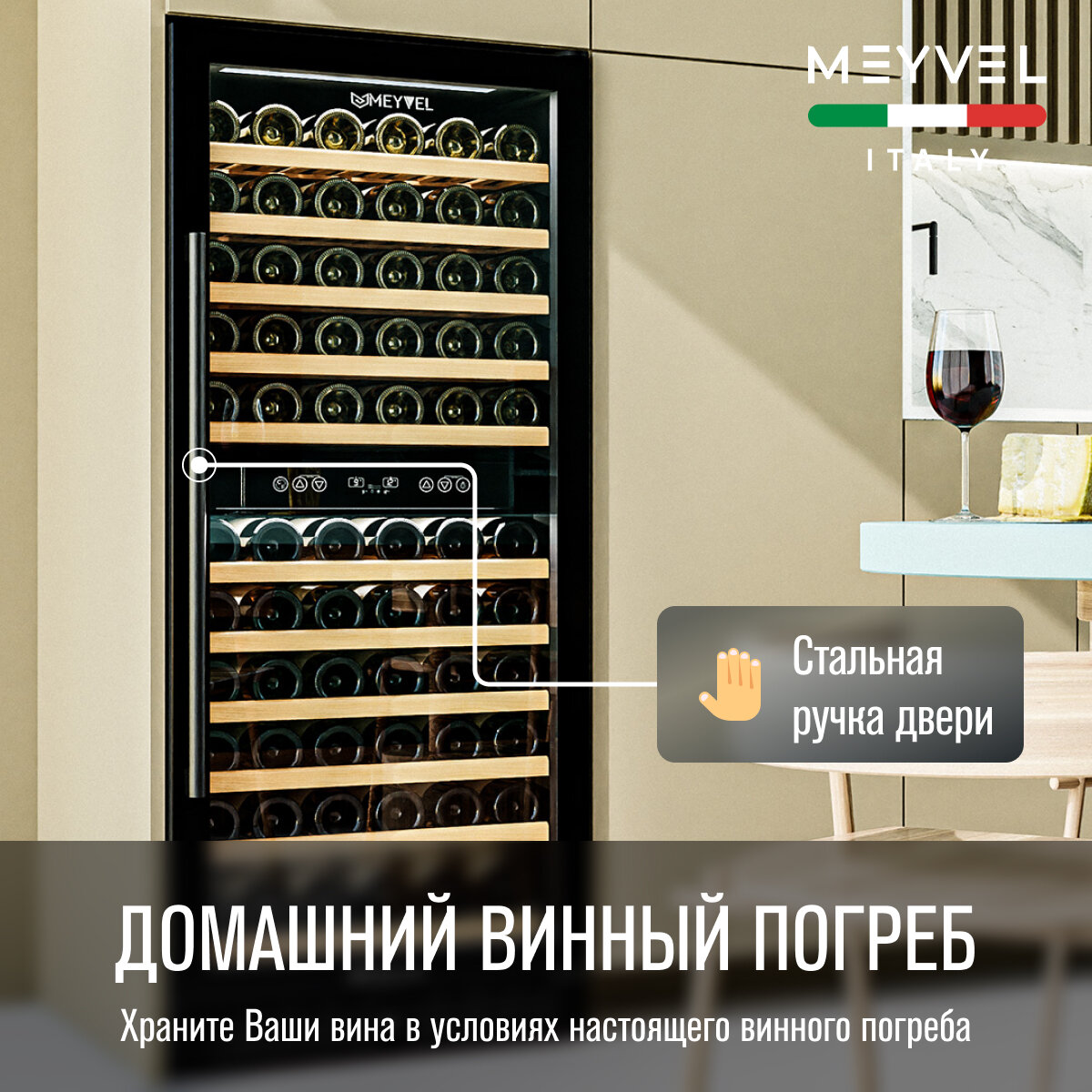 Винный холодильный шкаф Meyvel MV116-KBT2 компрессорный (встраиваемый / отдельностоящий холодильник для вина на 116 бутылок) интересное: