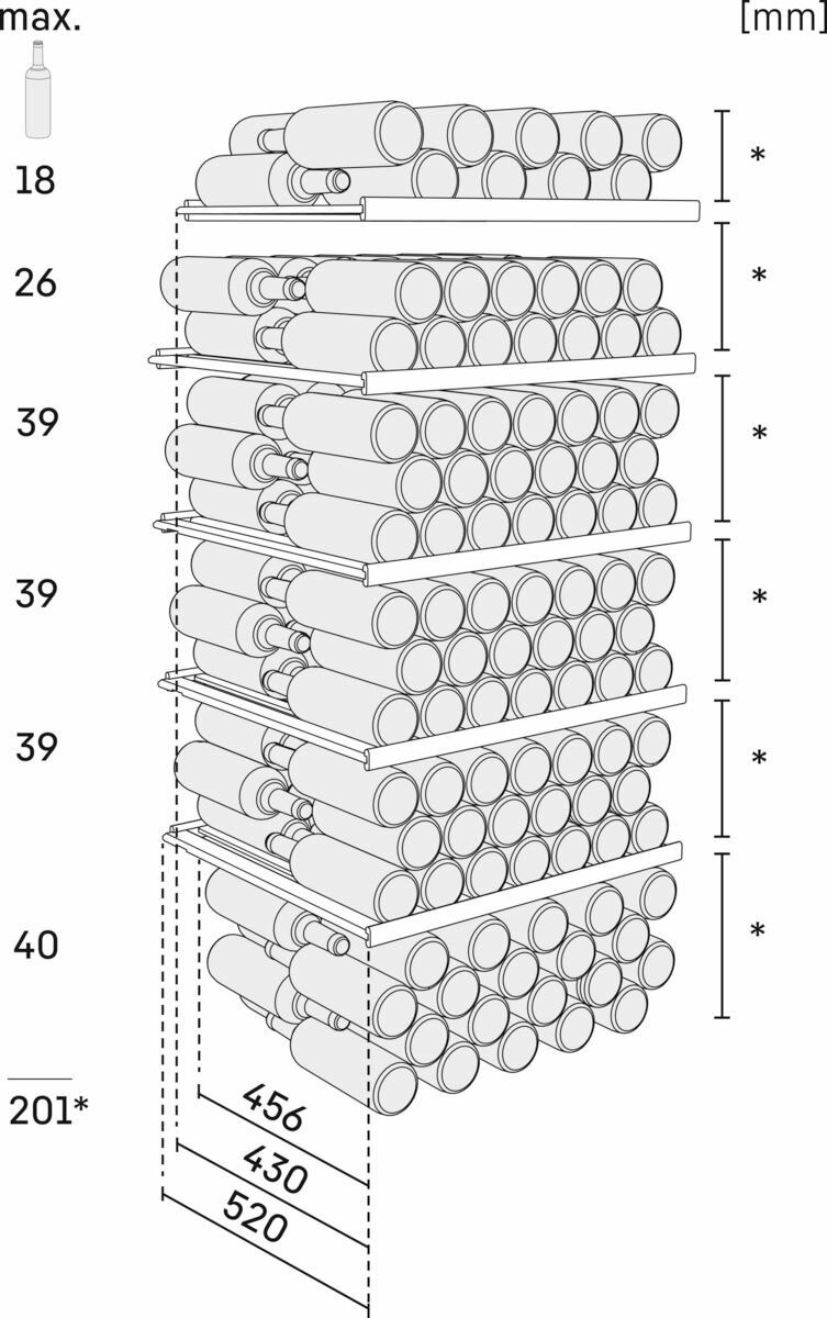 | Емкость винного шкафа, бут. | 201 |