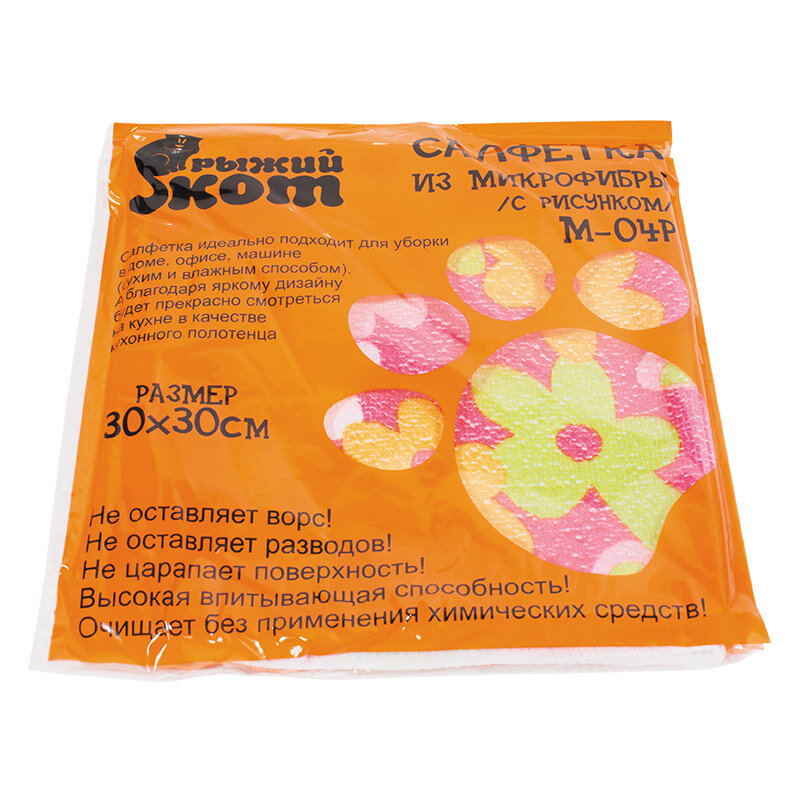 Салфетка универс. M-04P(310222) Рыжий кот 30х30см. микрофибра