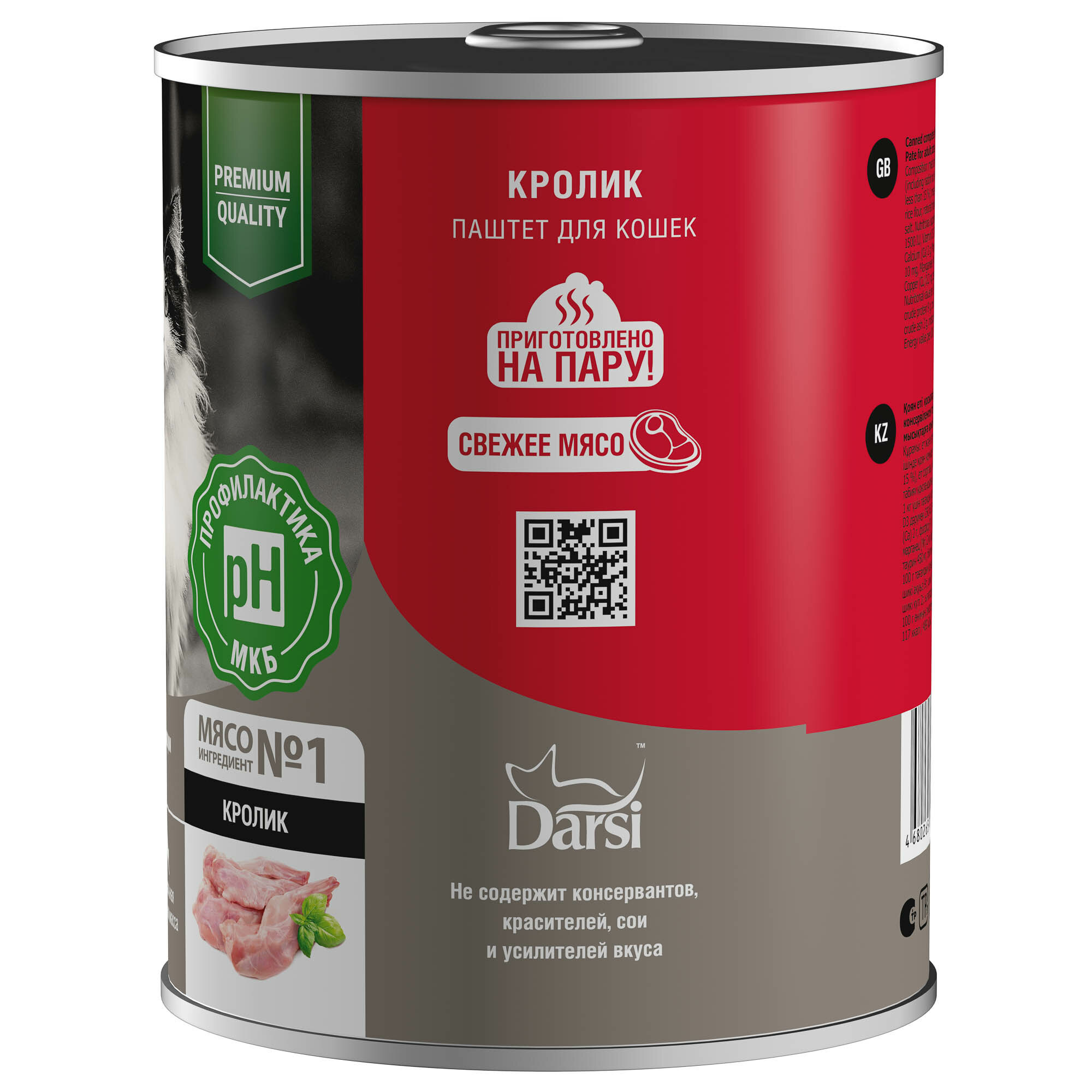 Влажный корм для кошек Darsi Паштет, кролик, 6*340 г (6 банок)