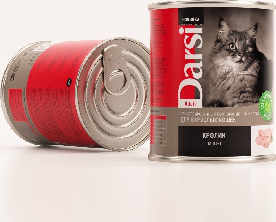 Корм влажный Darsi (паштет) для взрослых кошек Кролик, 12шт.*340 г