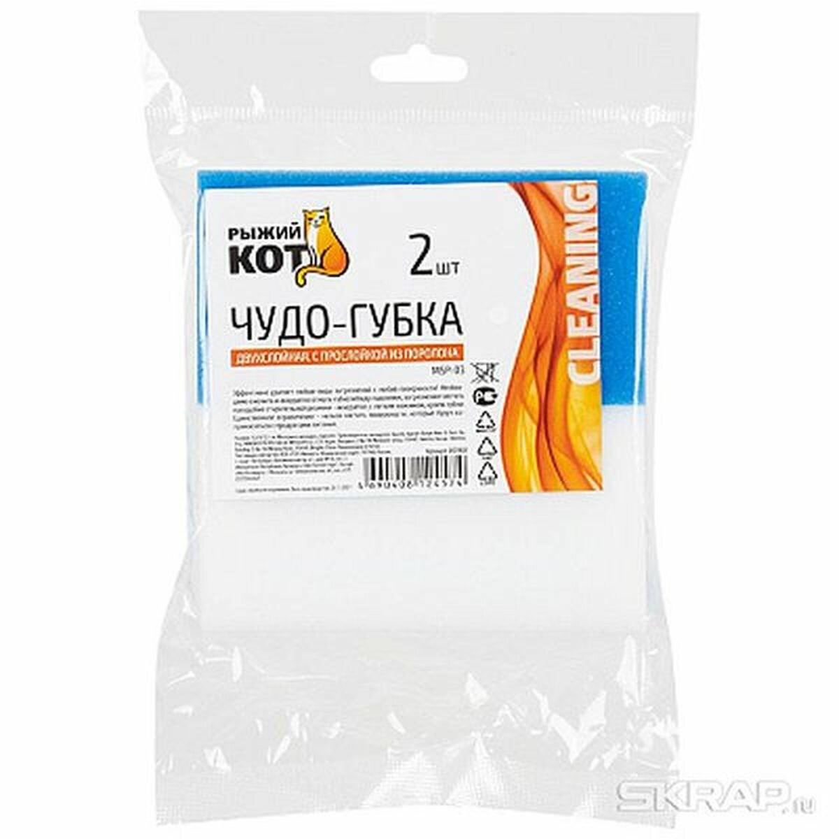Рыжий кот Чудо-губка MSp-03 двухслойная, с прослойкой из поролона, 2 шт. в наборе 003960