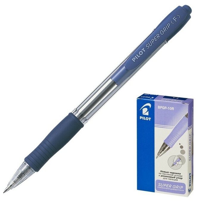 Ручка шариковая масляная автоматическая с грипом PILOT "Super Grip", синяя, узел 0.7 мм, линия письма 0.32 мм, BPGP-10R, BPGP-10R-F,М