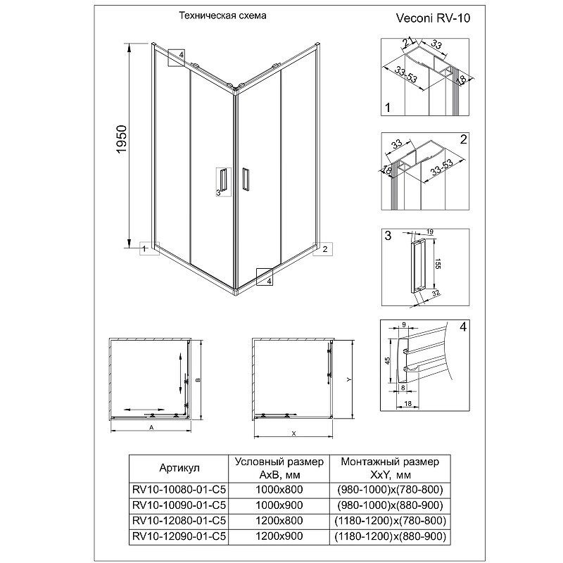 Душевой уголок Veconi RV10-12090-01-C5
