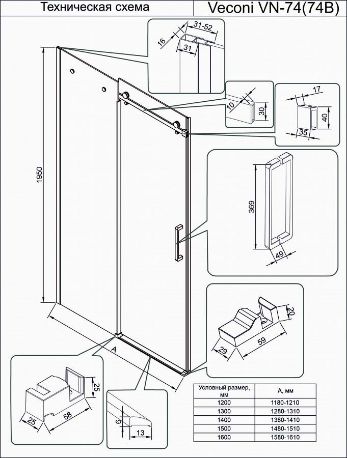 | Высота | 1950 мм |