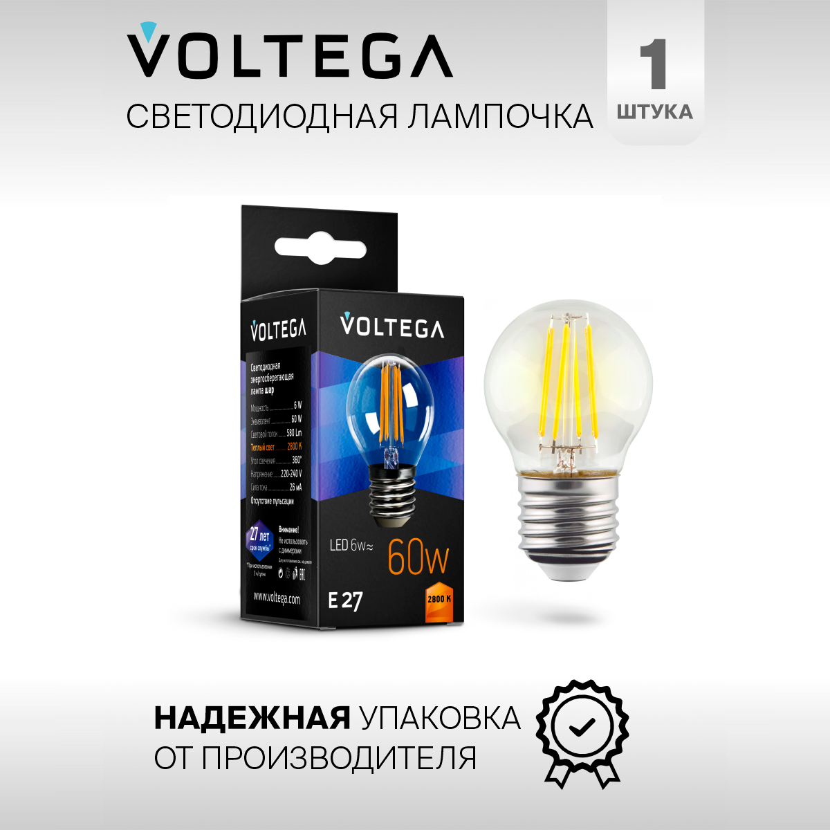 Лампа светодиодная Voltega 7023, E27, 6 Вт, 2800 К