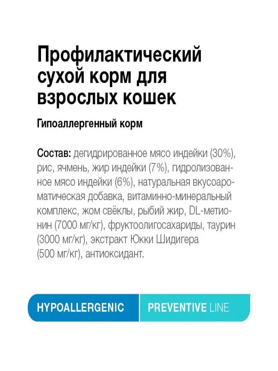 Hypoallergenic сухой корм для кошек "Гипоаллергенный". 2 кг