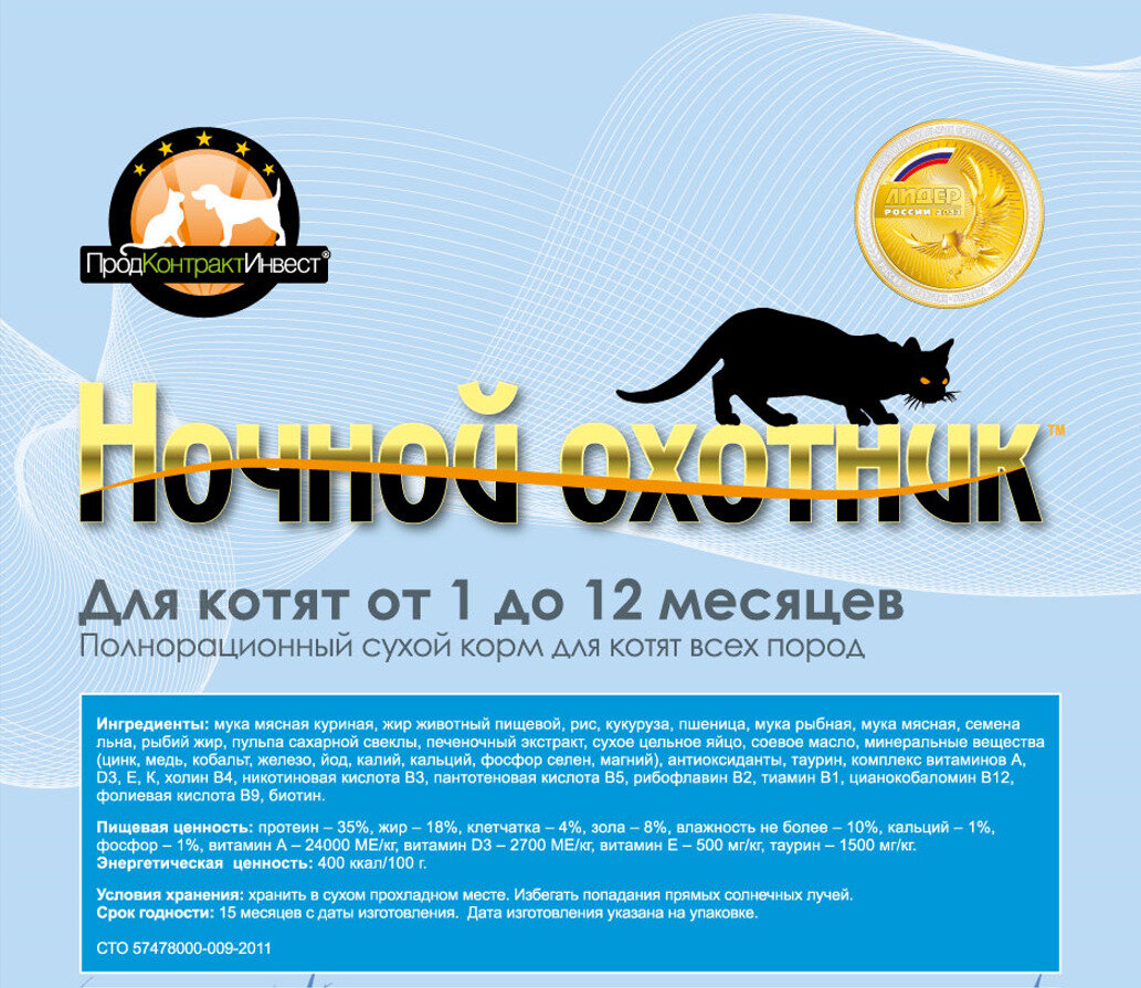 Ночной охотник Сухой корм “Ночной охотник” для котят от 1 до 12 месяцев, 1,5 кг