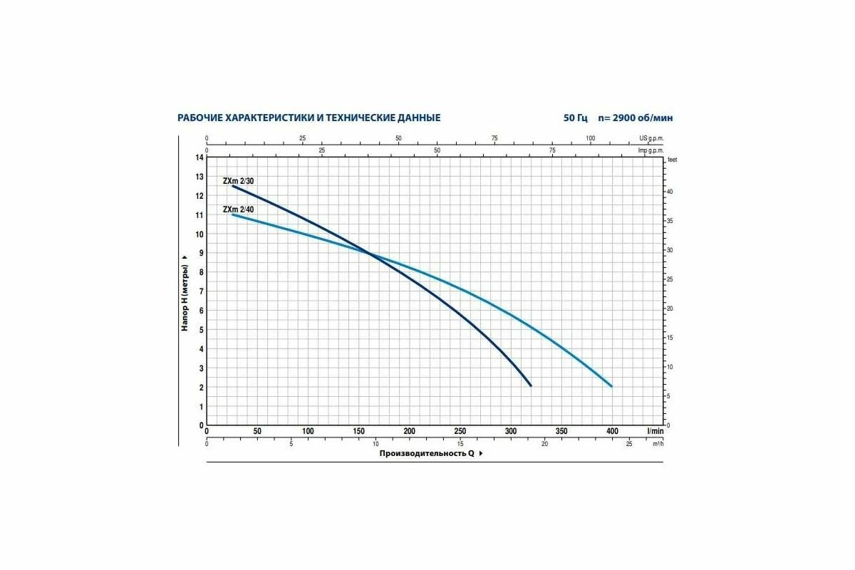 Насос фекальный Pedrollo ZXm 2/40 (0,55 кВт, Qmax 400 л/мин, Hmax 11.5 м, 1x230В, кабель 5 м)