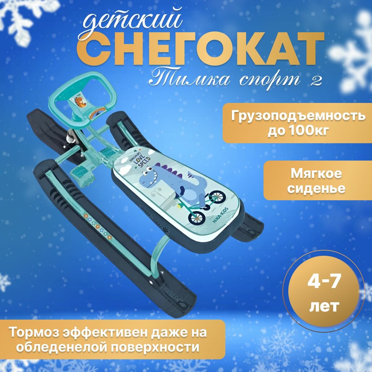 Снегокат тимка спорт 2+ до 100 кг NIKA ТС2+/Д С динозавром