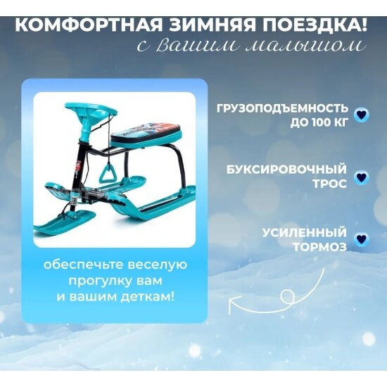 Снегокат Nika, Тимка спорт 2+, ТС2+/Г, 42 см, с гонщиком, черный каркас, буксировочный трос
