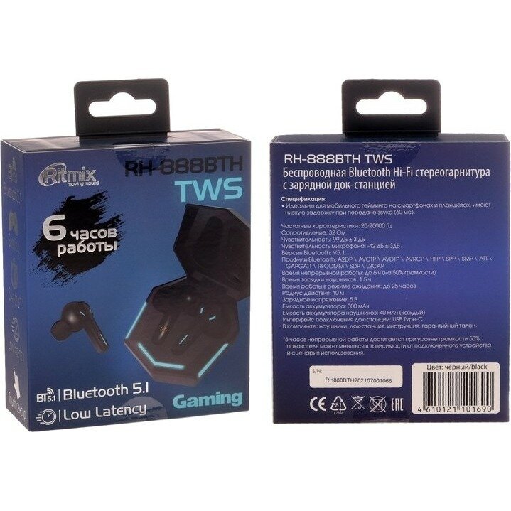 Игровая гарнитура Ritmix RH-888BTH TWS black
