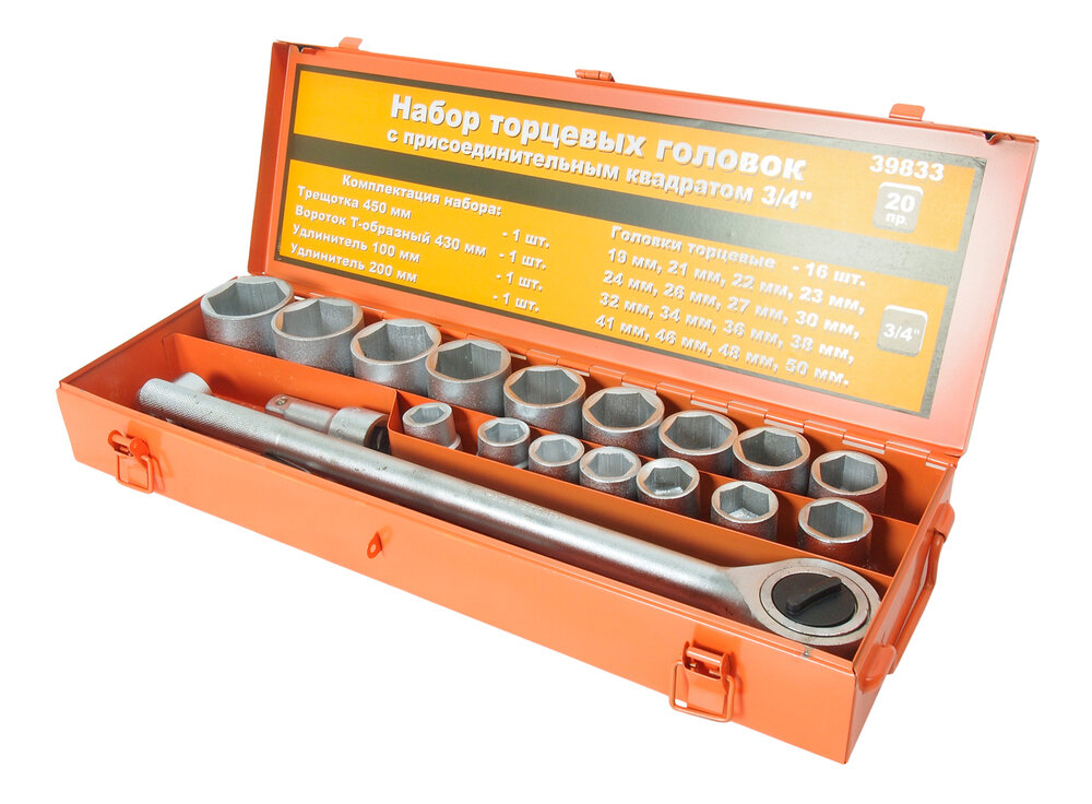 Набор головок АвтоDело 3/4", 19-50 мм, 20 предметов 39833 10247