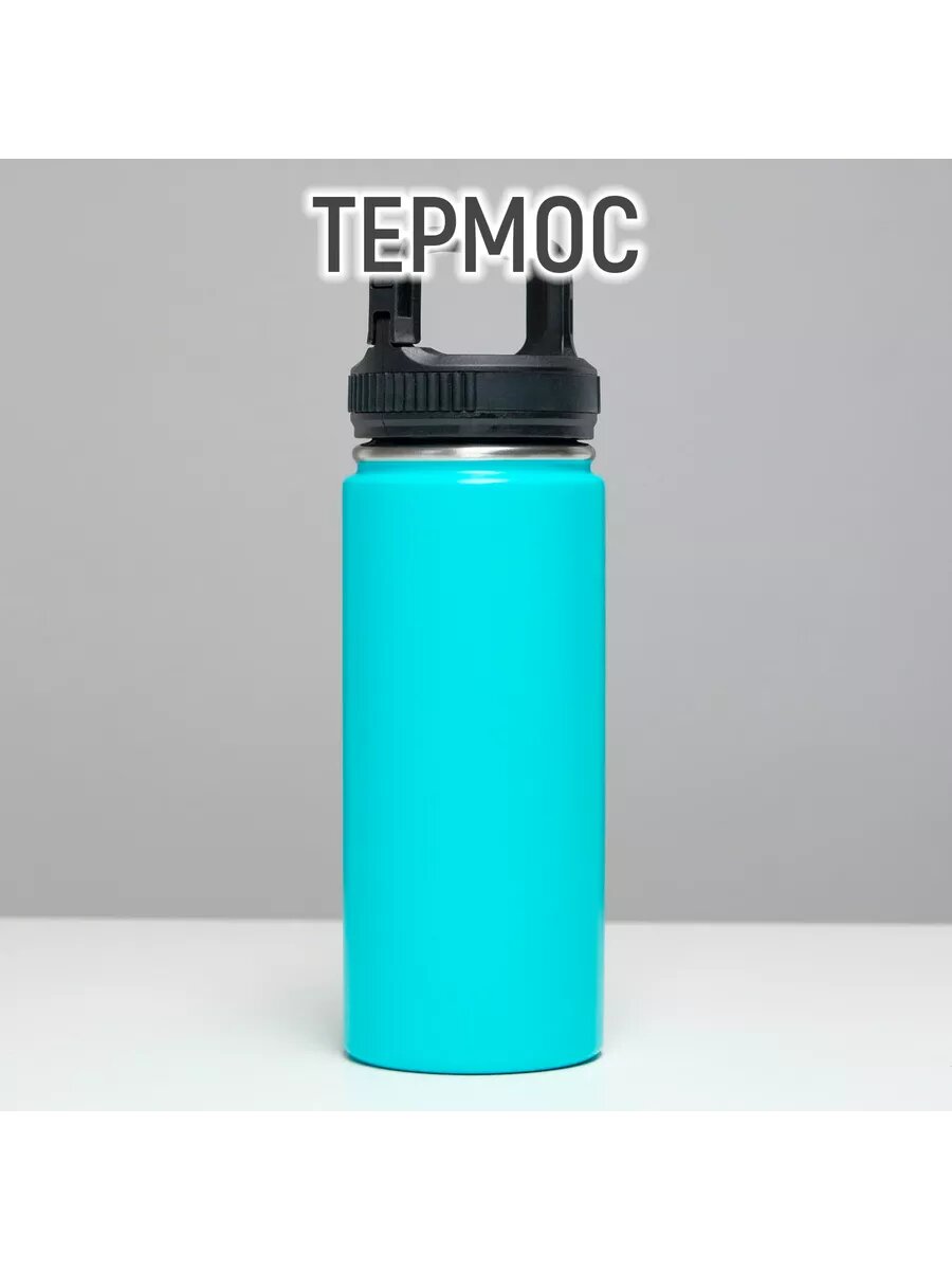 Термос, 550 мл, Карабин, сохраняет тепло 24 ч, голубой