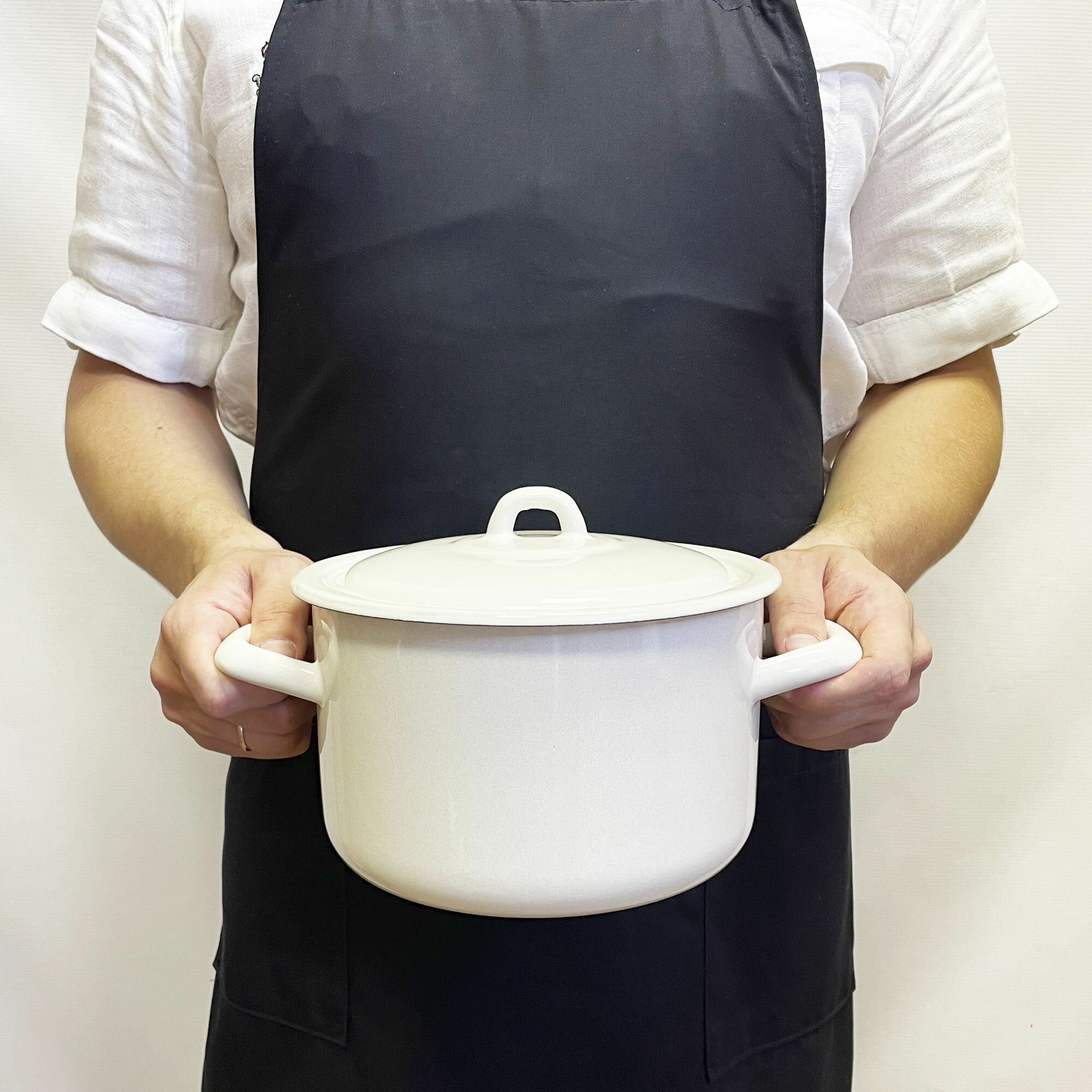 Кастрюля эмалированная с крышкой для индукционной плиты, объем 4,3