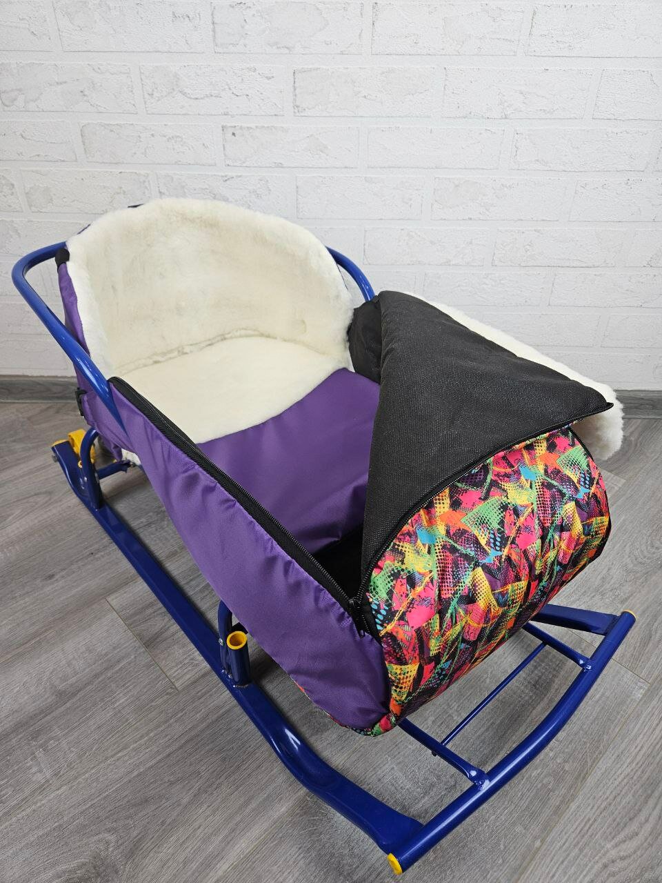 СохранитьМатрасик для санок меховой 3 в 1 Метелица разноцветная бок ярко-фиолетовый мех белый интересное: