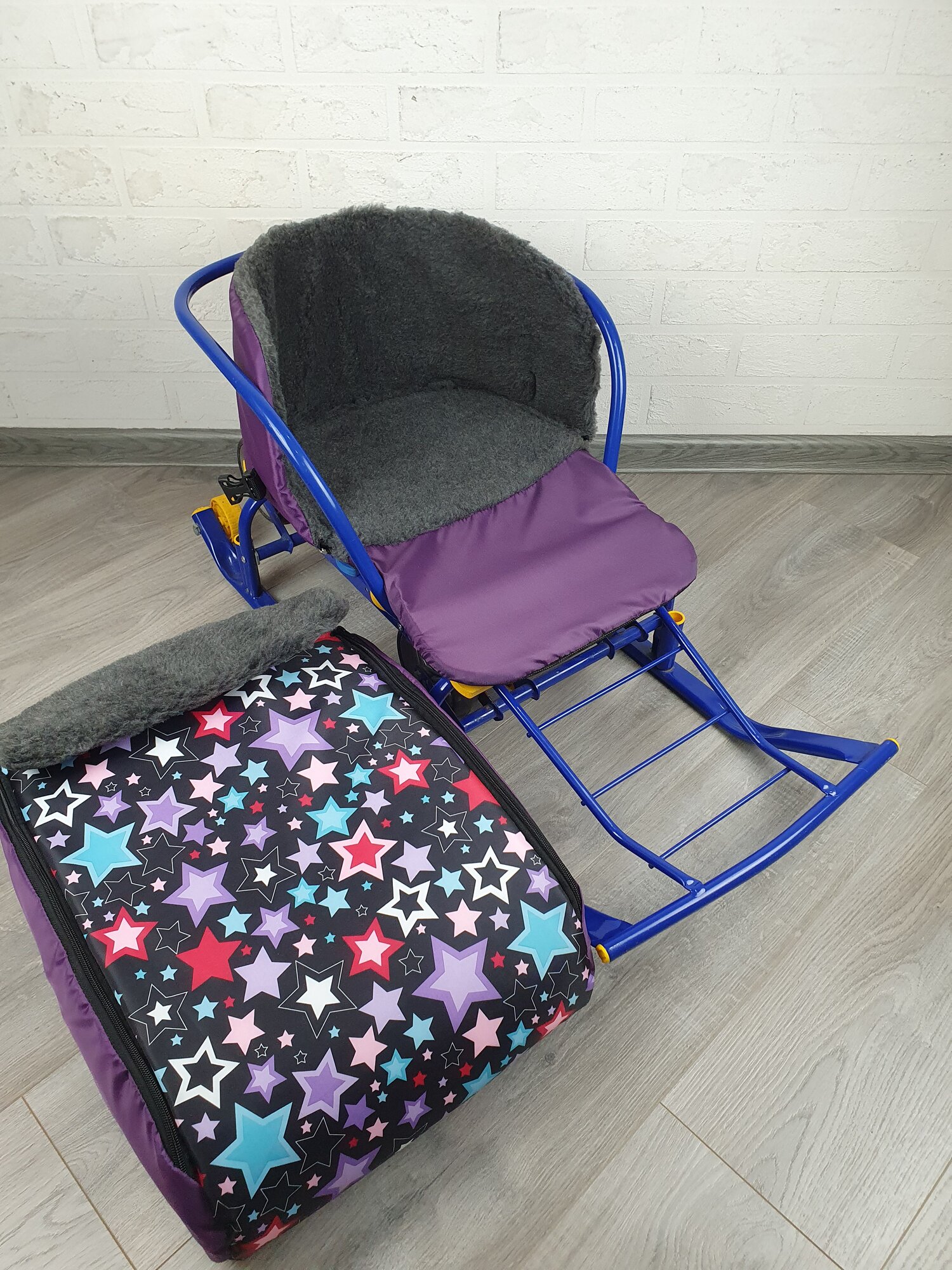 Купить Матрасик для санок меховой 3 в 1 Звездное небо бок фиолетовый мех серый